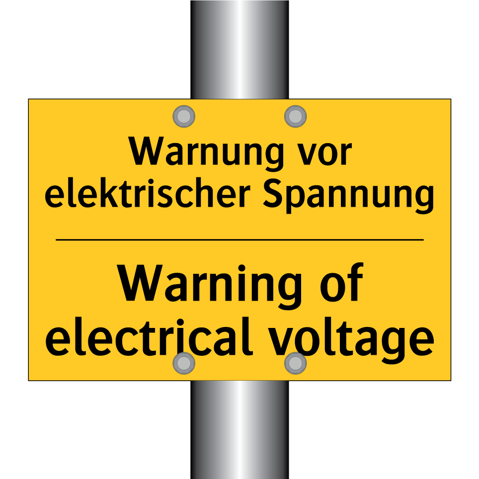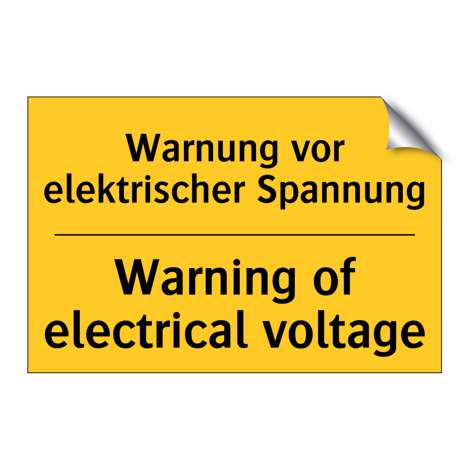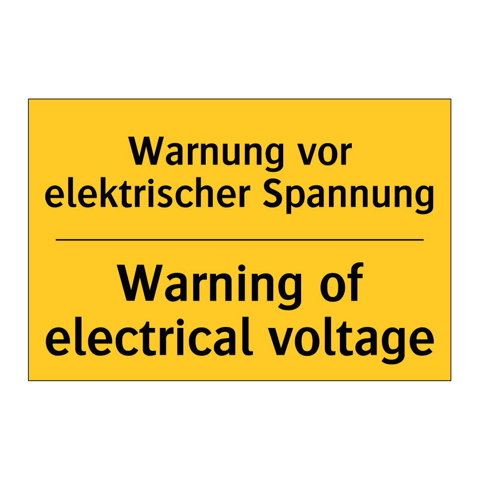 Zweisprachiges Warnschild mit deutschem Text Warnung vor elektrischer Spannung und englischem Text Warning of electrical voltage