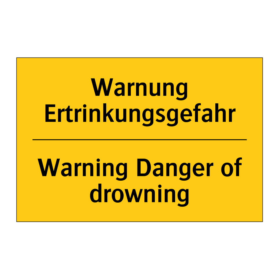 Diese zweisprachige Warnschild mit gelbem Hintergrund und schwarzem Text ist ideal, um auf die Gefahr des Ertrinkens hinzuweisen. Dank der Beschriftung in Deutsch und Englisch eignet sich das Schild hervorragend für internationale Umgebungen, wie Schwimmbäder, Strände oder Seen, wo sowohl deutsch- als auch englischsprachige Besucher unterwegs sind. Die klare und deutliche Darstellung der Warnung sorgt dafür, dass die Botschaft unmissverständlich vermittelt wird. Diese Warnschilder sind unverzichtbar, um die Sicherheit in Bereichen mit Wassergefahr zu erhöhen und potenzielle Risiken zu minimieren. Platzieren Sie das Schild an gut sichtbaren Stellen, um maximale Aufmerksamkeit zu gewährleisten.