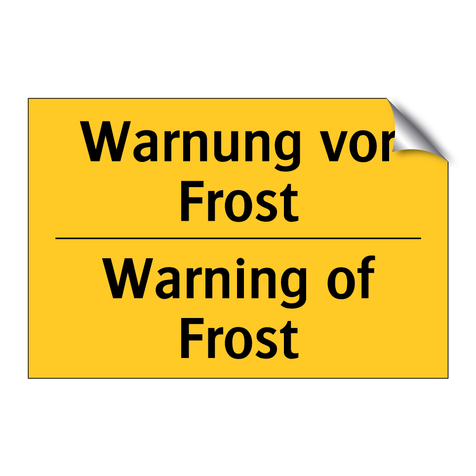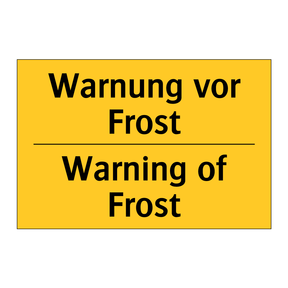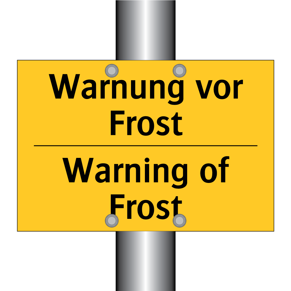 Zweisprachiges Warnschild mit deutschem Text Warnung vor Frost und englischem Text Warning of Frost