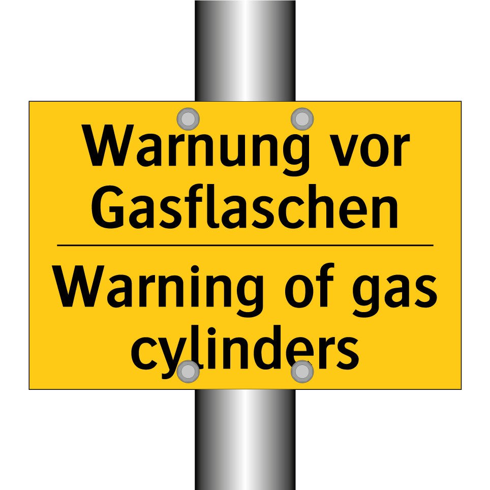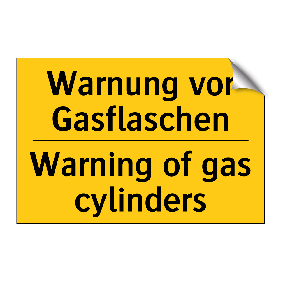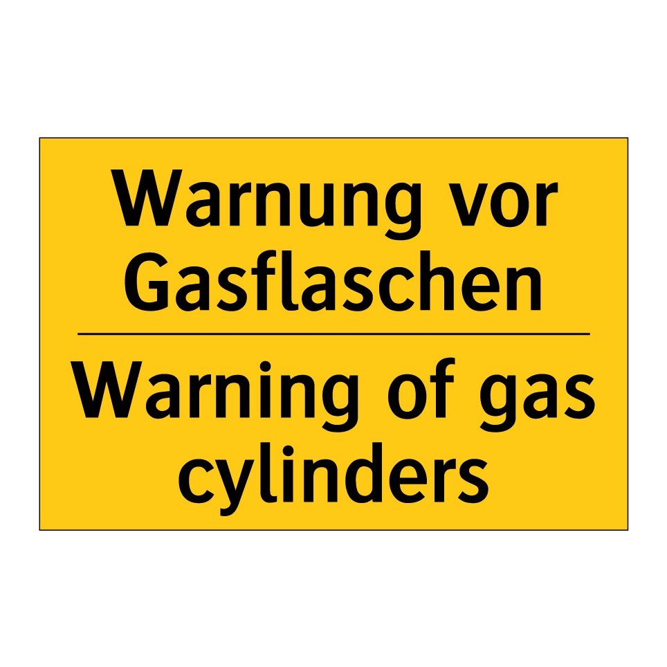 Zweisprachiges Warnschild mit deutschem Text Warnung vor Gasflaschen und englischem Text Warning of gas cylinders