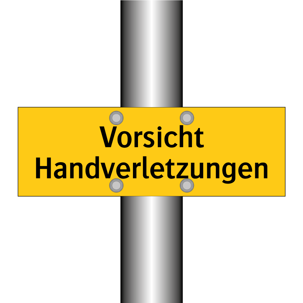 Warnschild mit dem Text Vorsicht Handverletzungen