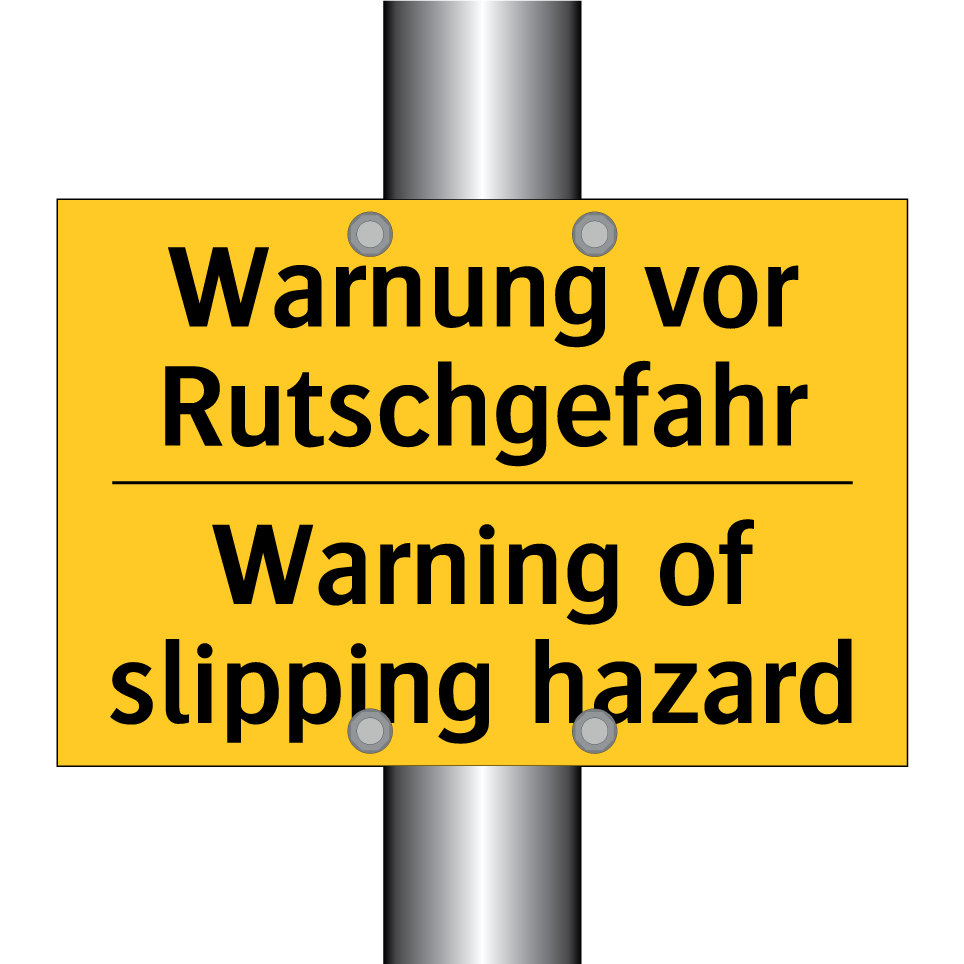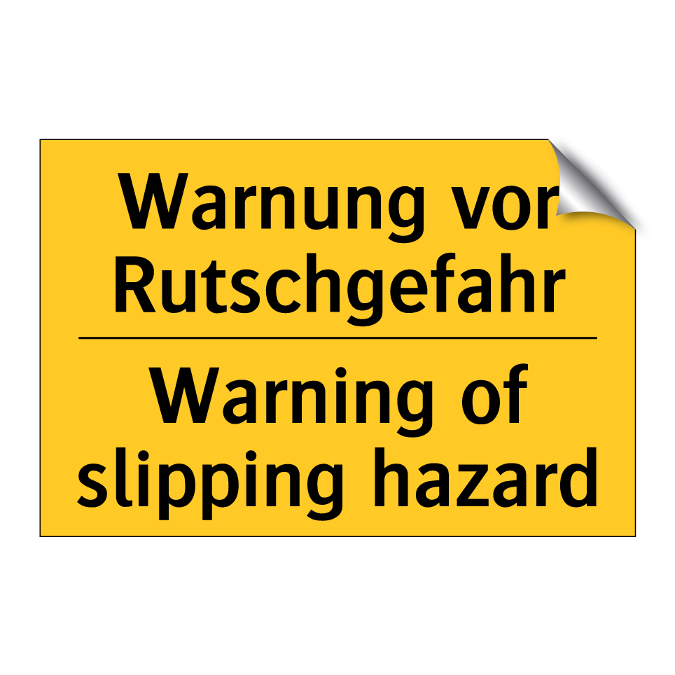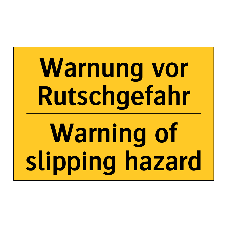 Zweisprachiges Warnschild mit deutschem Text Warnung vor Rutschgefahr und englischem Text Warning of slipping hazard