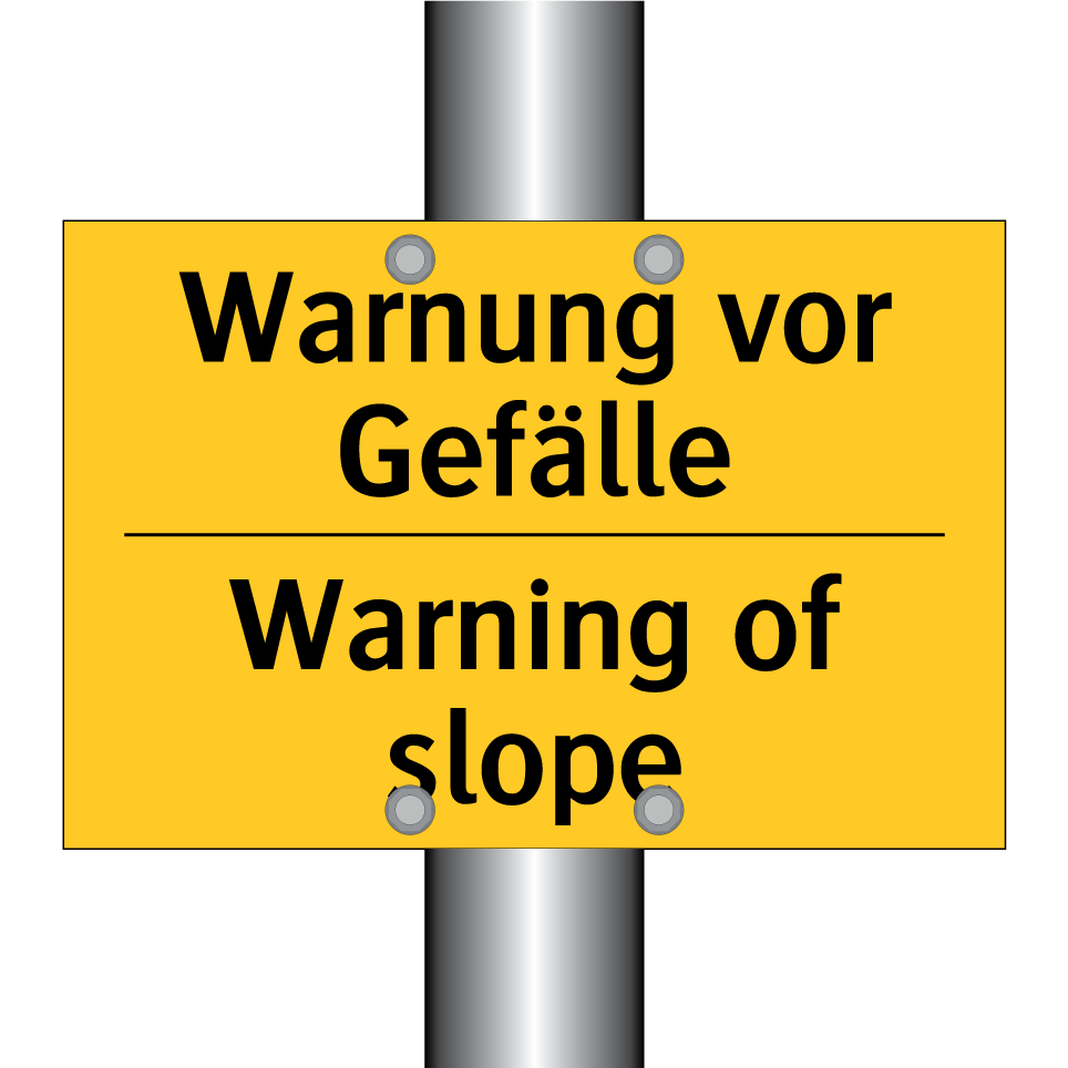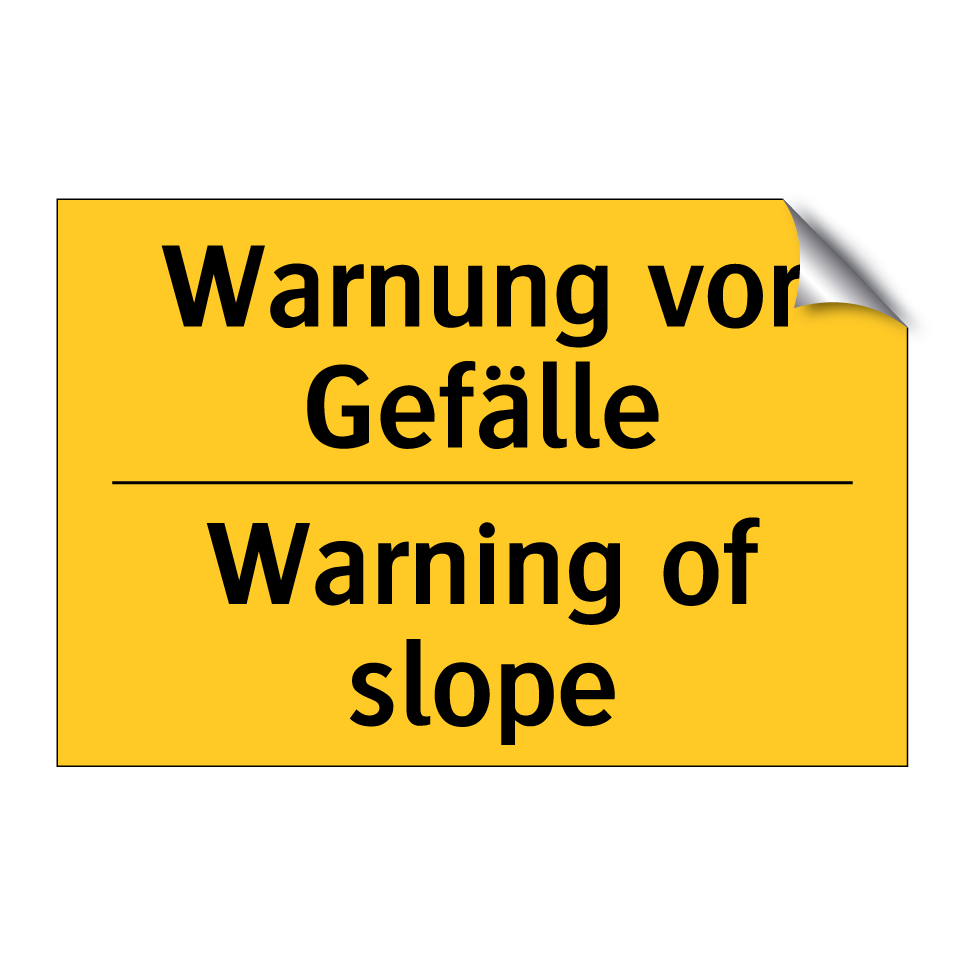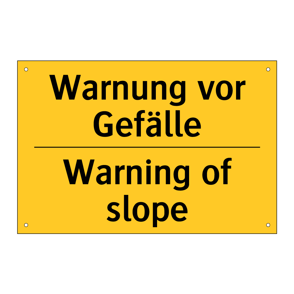 Zweisprachiges Warnschild mit deutschem Text Warnung vor Gefälle und englischem Text Warning of slope