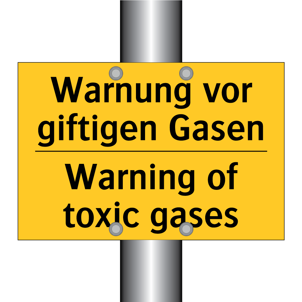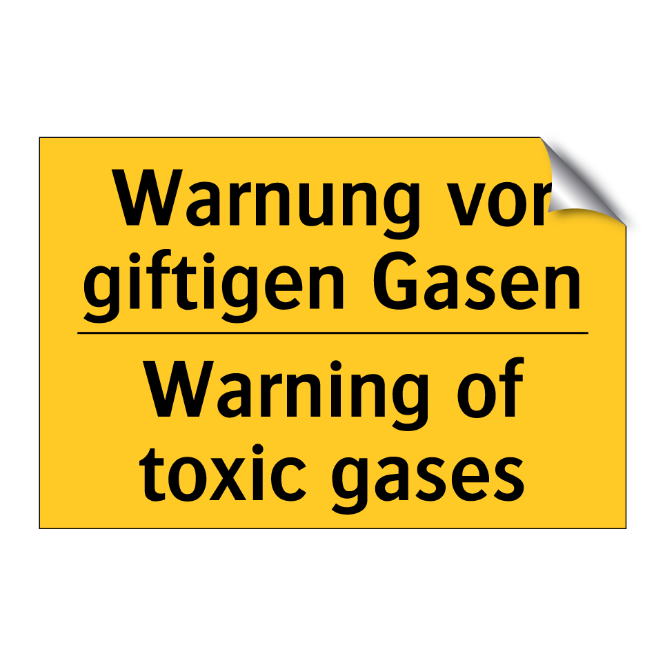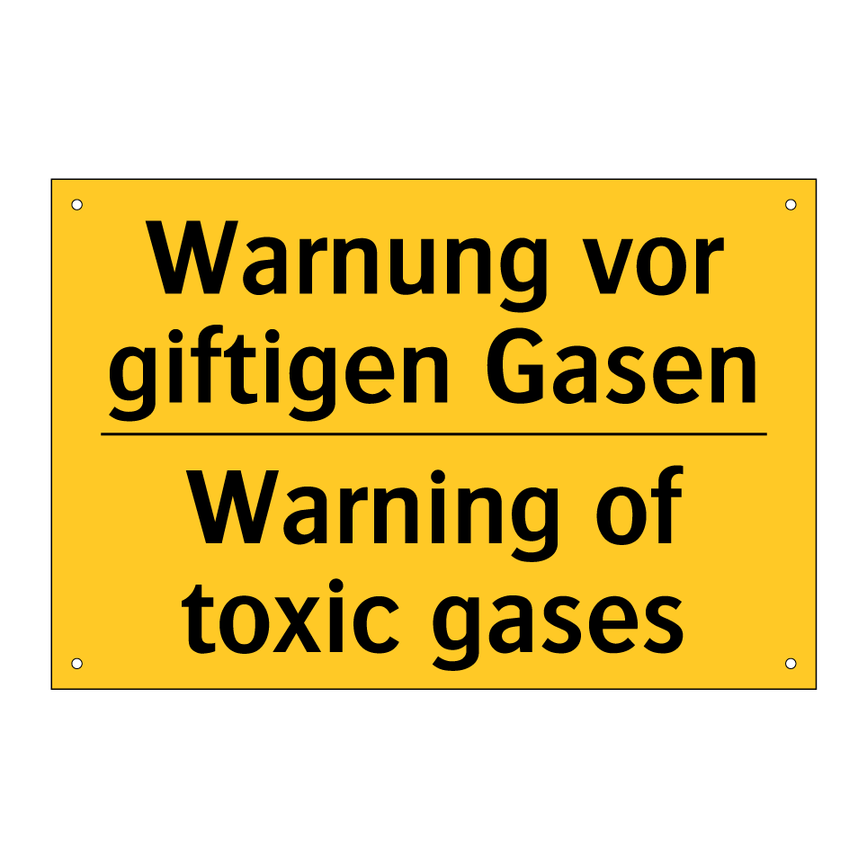 Zweisprachiges Warnschild mit deutschem Text Warnung vor giftigen Gasen und englischem Text Warning of toxic gases