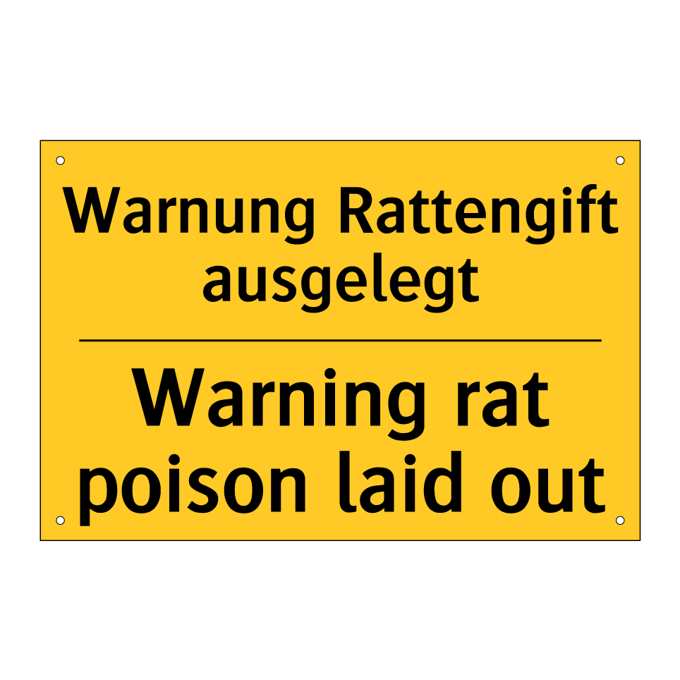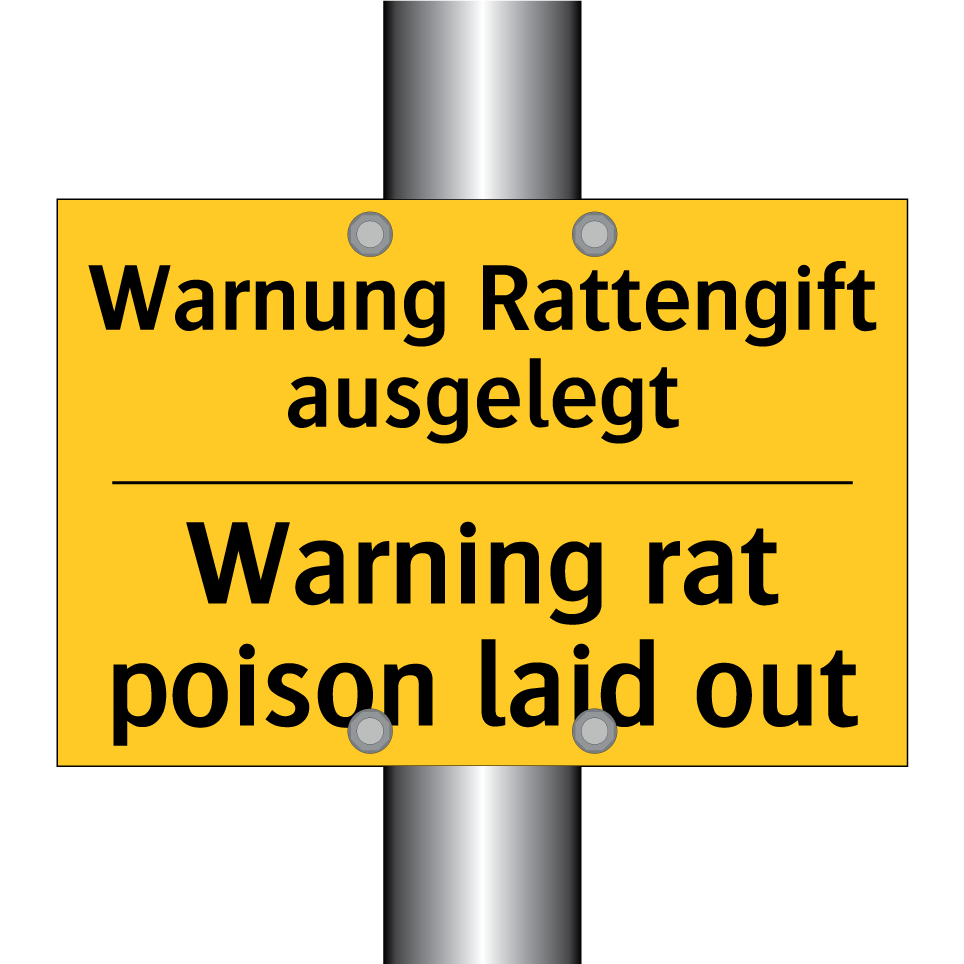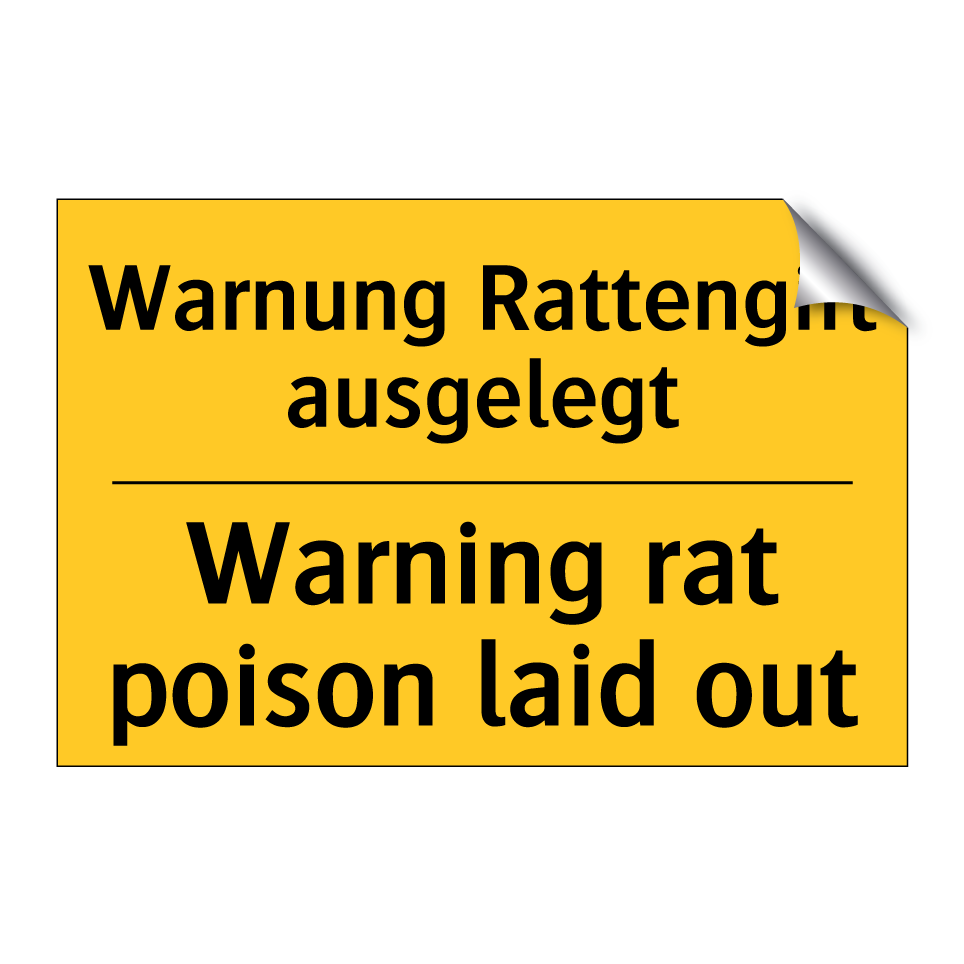 Zweisprachiges Warnschild mit deutschem Text Warnung Rattengift ausgelegt und englischem Text Warning rat poison laid out