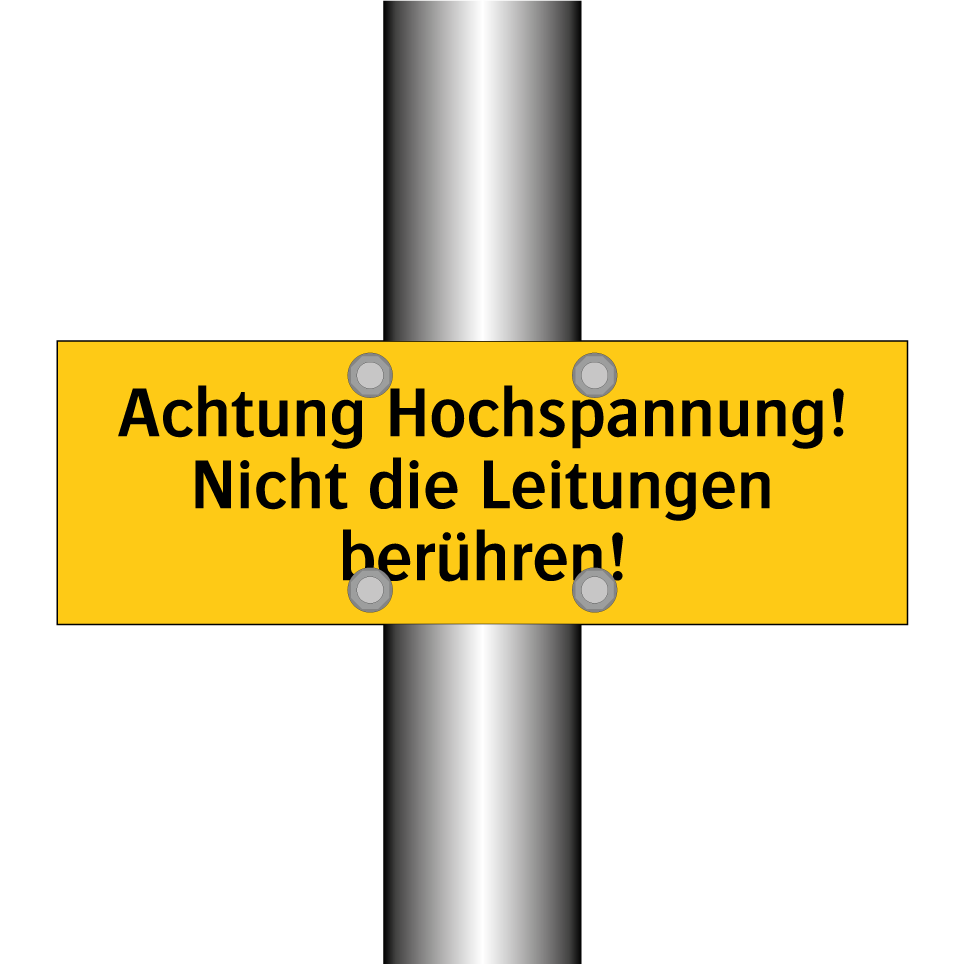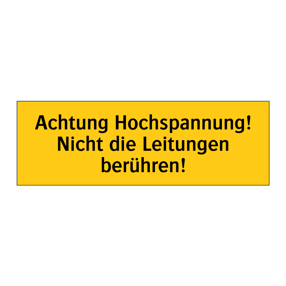 Warnschild mit dem Text Achtung Hochspannung! Nicht die Leitungen berühren!