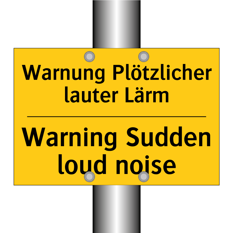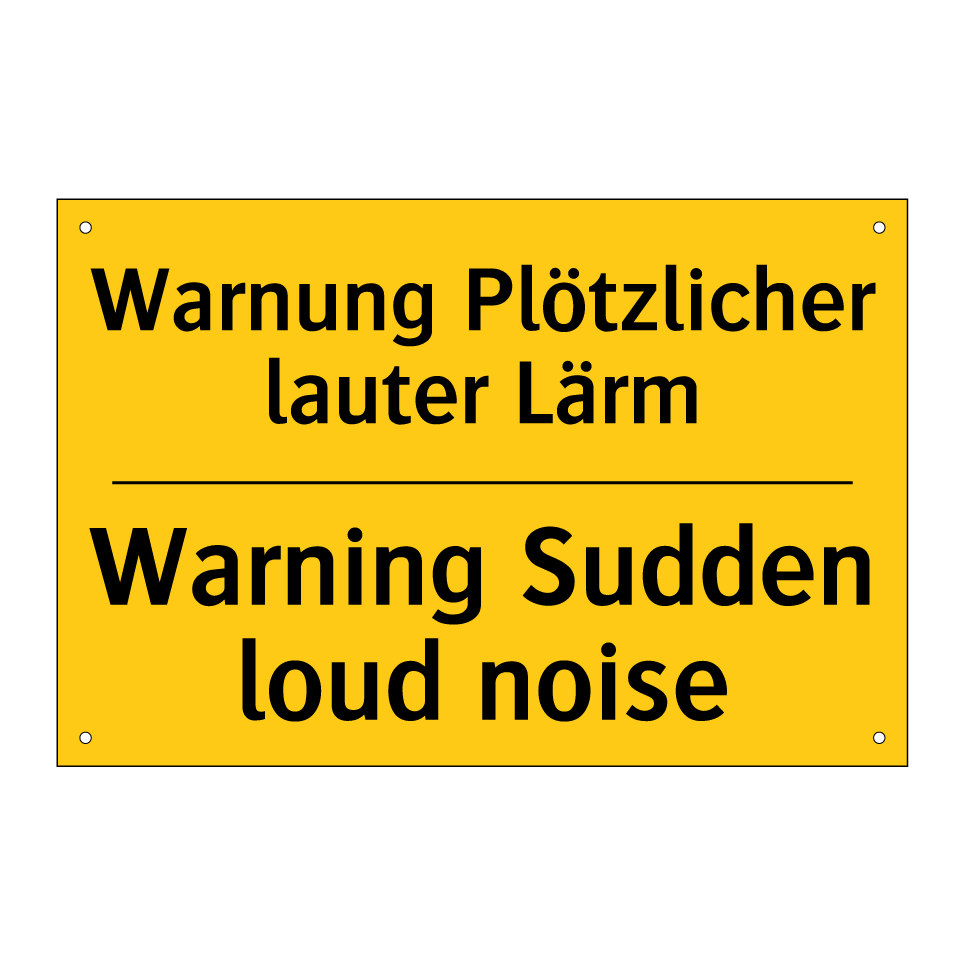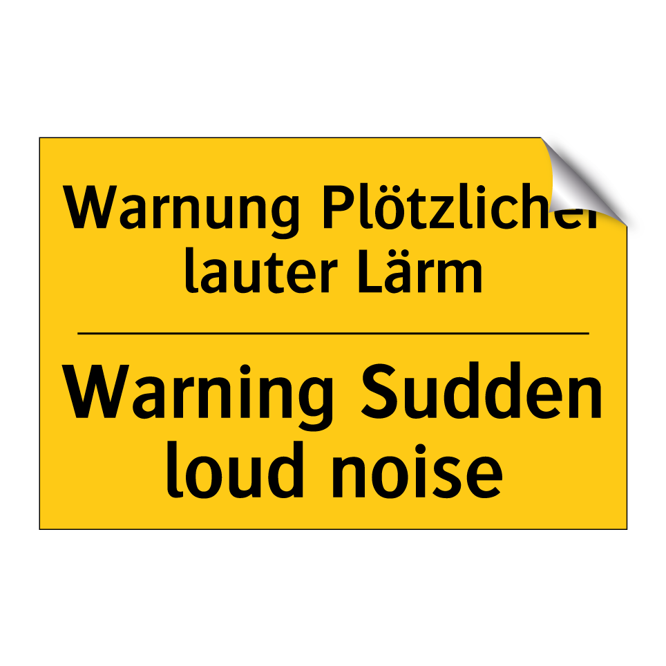 Zweisprachiges Warnschild mit deutschem Text Warnung Plötzlicher lauter Lärm und englischem Text Warning Sudden loud noise