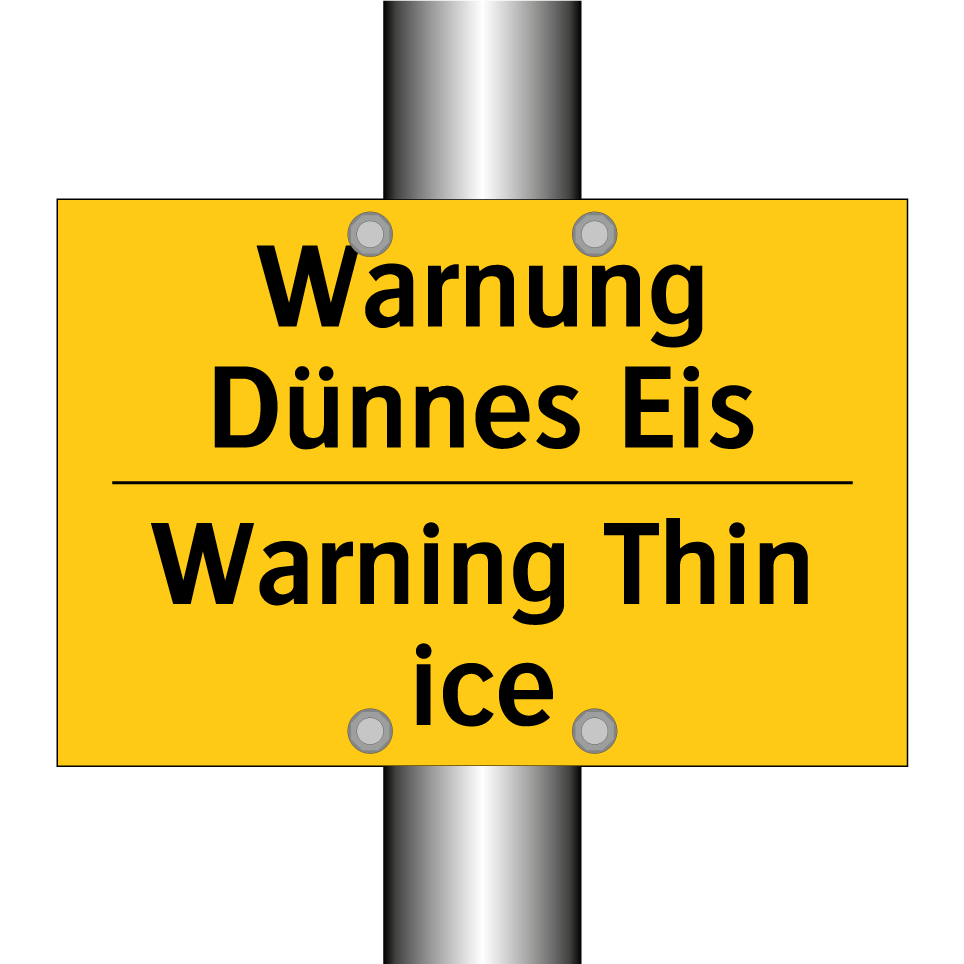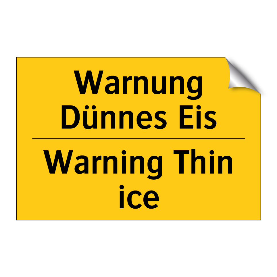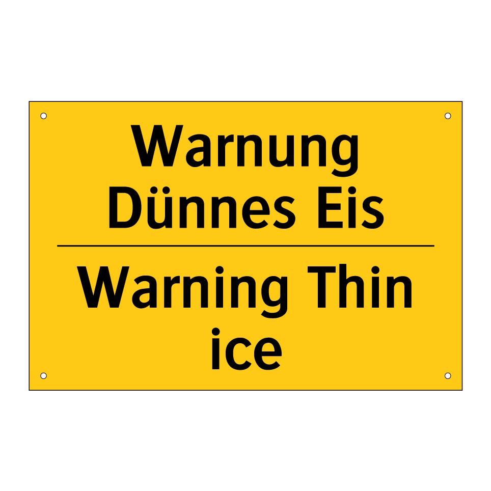 Zweisprachiges Warnschild mit deutschem Text Warnung Dünnes Eis und englischem Text Warning Thin ice