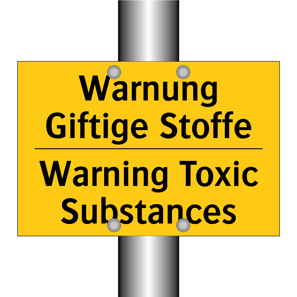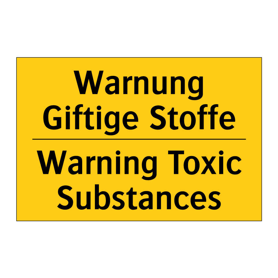 Zweisprachiges Warnschild mit deutschem Text Warnung Giftige Stoffe und englischem Text Warning Toxic Substances