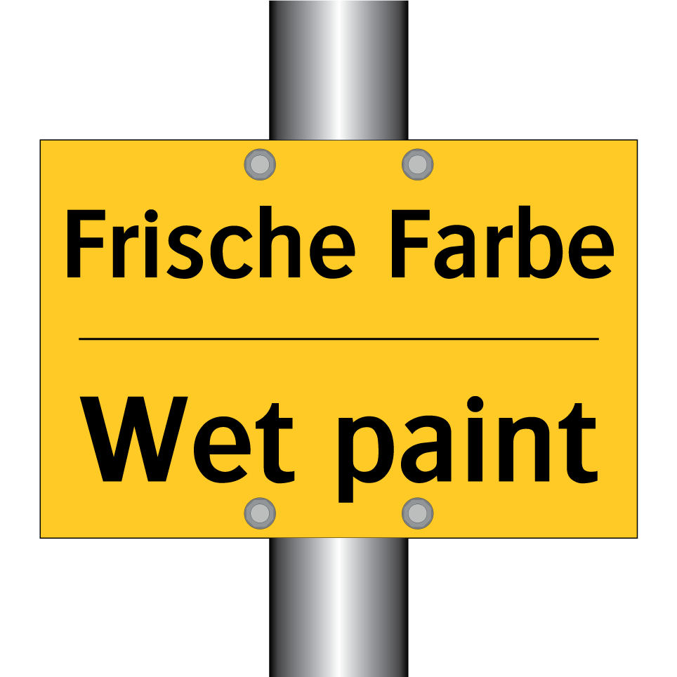 Zweisprachiges Warnschild mit deutschem Text Frische Farbe und englischem Text Wet paint