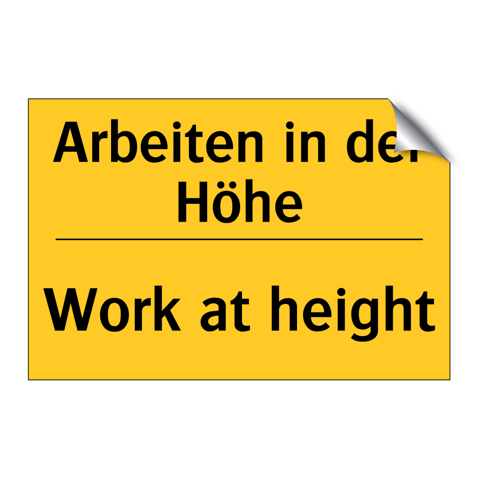 Zweisprachiges Warnschild mit deutschem Text Arbeiten in der Höhe und englischem Text Work at height