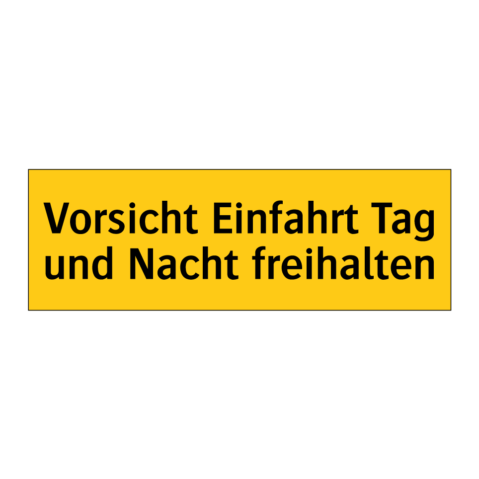 Warnschild mit dem Text Vorsicht Einfahrt Tag und Nacht freihalten