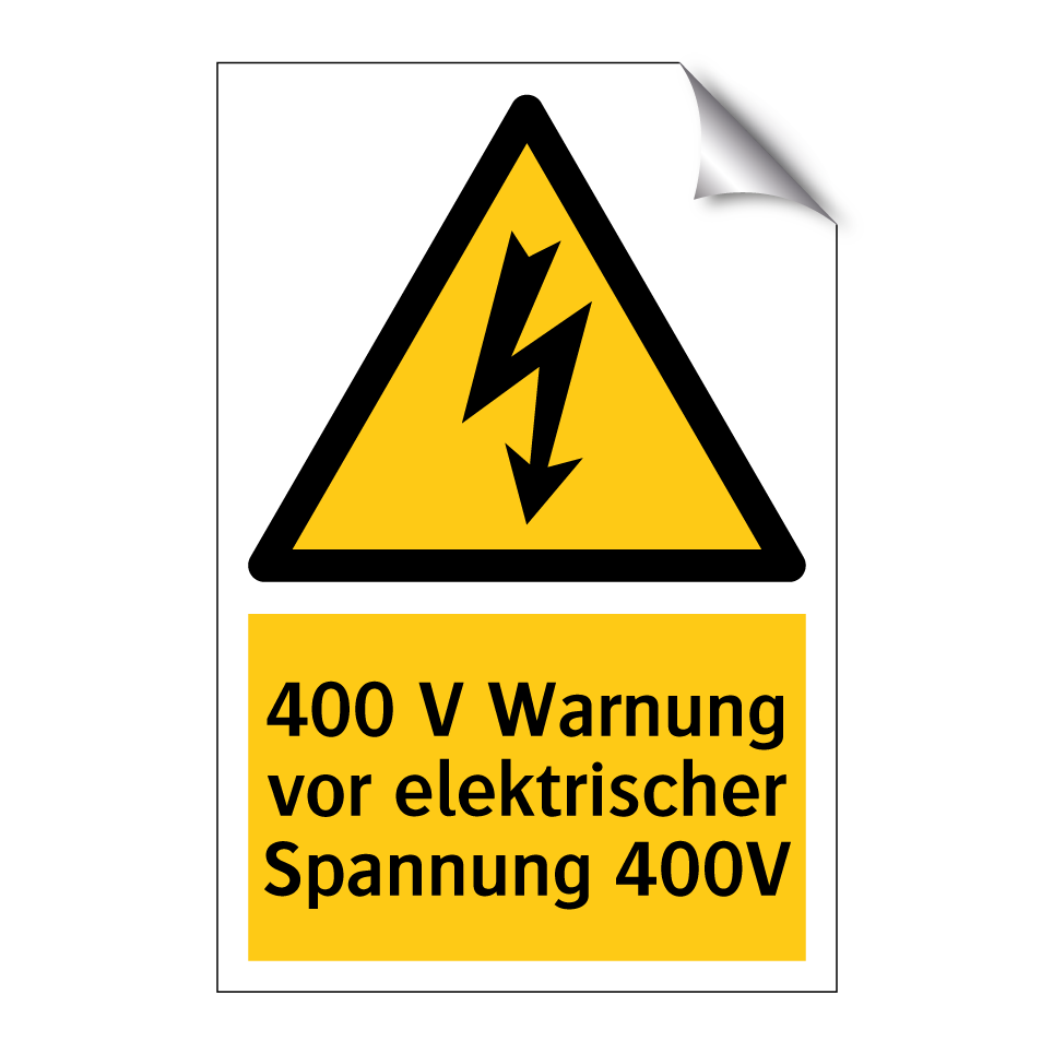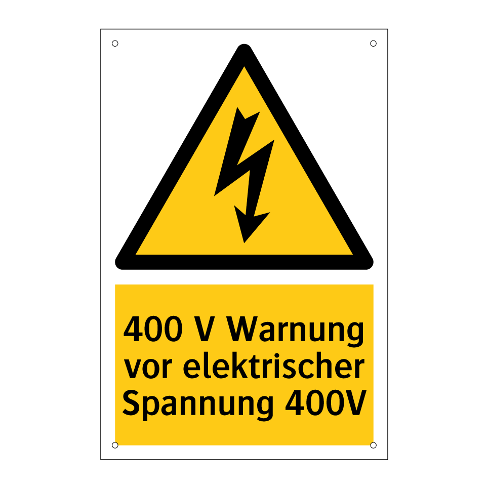 Warnschild mit dem Text 400 V Warnung vor elektrischer Spannung 400V