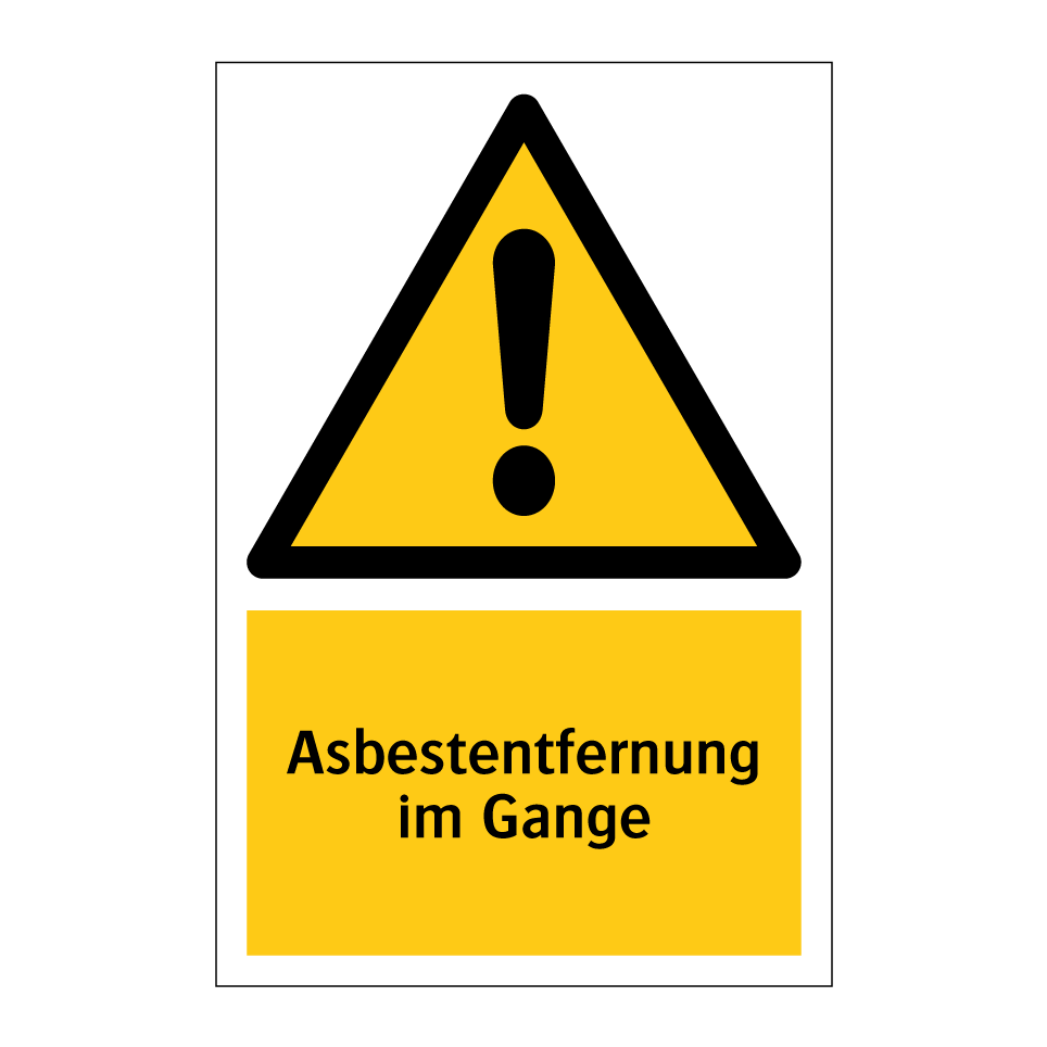 Diese Warnschild mit gelbem Hintergrund und schwarzem Text ist ideal für den Einsatz in Bereichen, in denen Asbestentfernung stattfindet. Es dient dazu, Personen auf die potenziellen Gefahren aufmerksam zu machen und sicherzustellen, dass nur autorisiertes Personal den Bereich betritt. Platzieren Sie das Warnschild an gut sichtbaren Stellen wie Eingängen zu Baustellen, in Gebäuden, die saniert werden, oder in der Nähe von Arbeitsbereichen, um maximale Sichtbarkeit zu gewährleisten. Diese Warnschilder sind unverzichtbar für die Sicherheit und den Schutz von Arbeitern und Besuchern in gefährdeten Zonen. Sie helfen, das Bewusstsein für die laufenden Arbeiten zu schärfen und tragen zur Einhaltung von Sicherheitsvorschriften bei.
