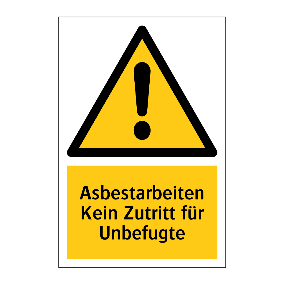 Warnschild mit dem Text Asbestarbeiten Kein Zutritt für Unbefugte