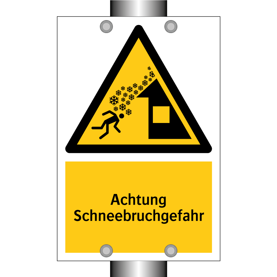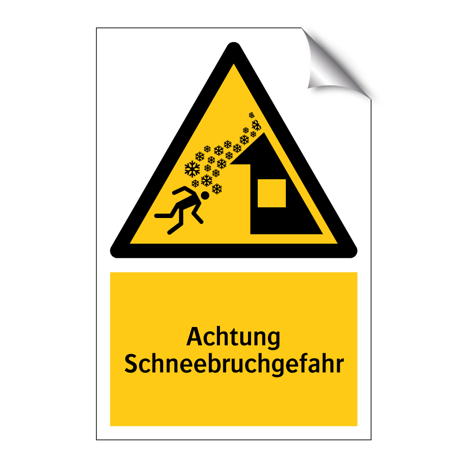 Warnschild mit dem Text Achtung Schneebruchgefahr