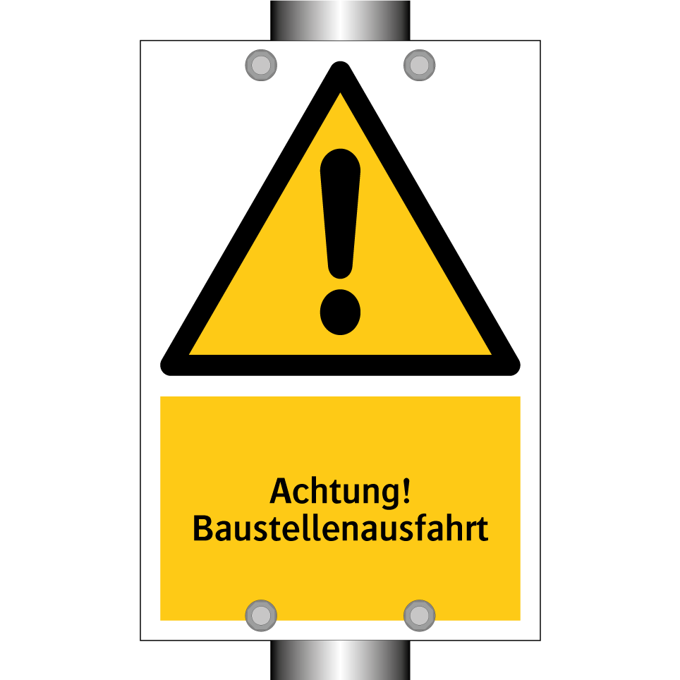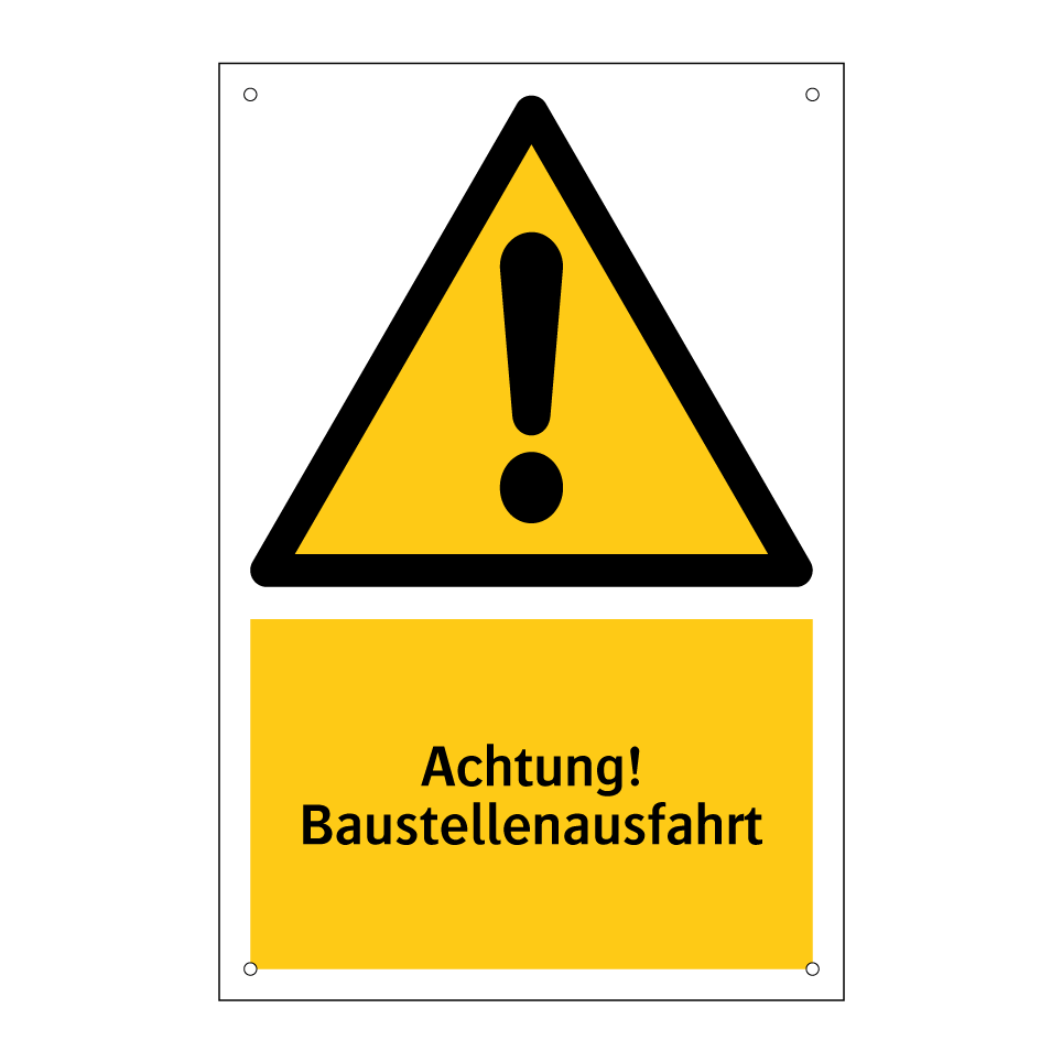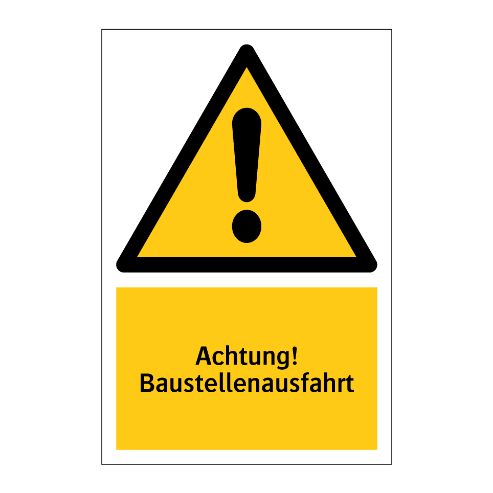 Warnschild mit dem Text Achtung! Baustellenausfahrt
