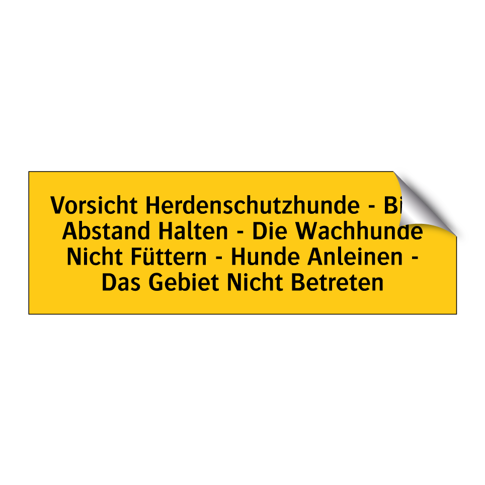 Warnschild mit dem Text Vorsicht Herdenschutzhunde - Bitte Abstand Halten - Die Wachhunde Nicht Füttern - Hunde Anleinen - Das Gebiet Nicht Betreten