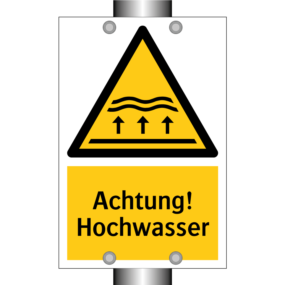 Diese Warnschild ist ein unverzichtbares Element für die Sicherheit in Gebieten, die von Hochwasser bedroht sind. Mit ihrer auffälligen gelben Hintergrundfarbe und der klaren schwarzen Schrift zieht sie sofort die Aufmerksamkeit auf sich und warnt effektiv vor möglichen Gefahren durch steigendes Wasser. Ideal für den Einsatz in Überschwemmungsgebieten, entlang von Flussufern oder in der Nähe von Dämmen, sorgt diese Warnschilder dafür, dass Passanten und Anwohner rechtzeitig gewarnt werden. Platzieren Sie sie an strategischen Punkten, um die Sicherheit zu erhöhen und das Bewusstsein für potenzielle Hochwasserrisiken zu schärfen.
