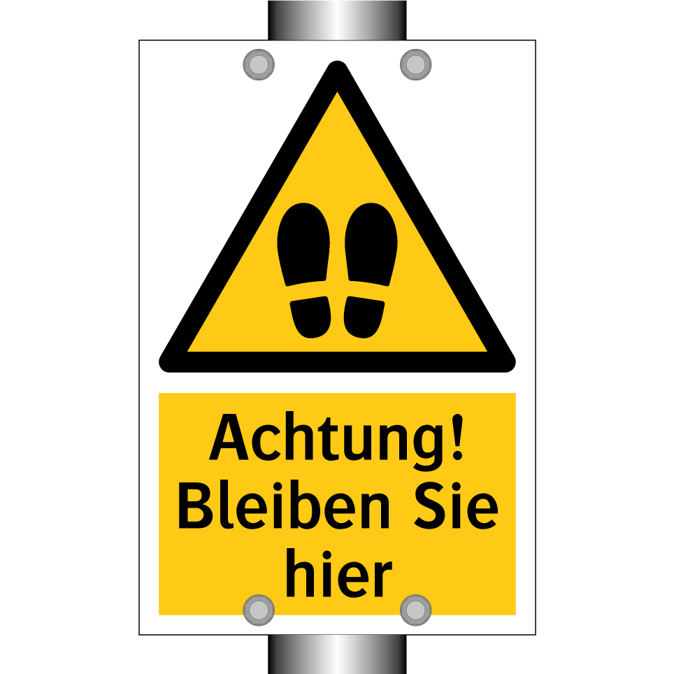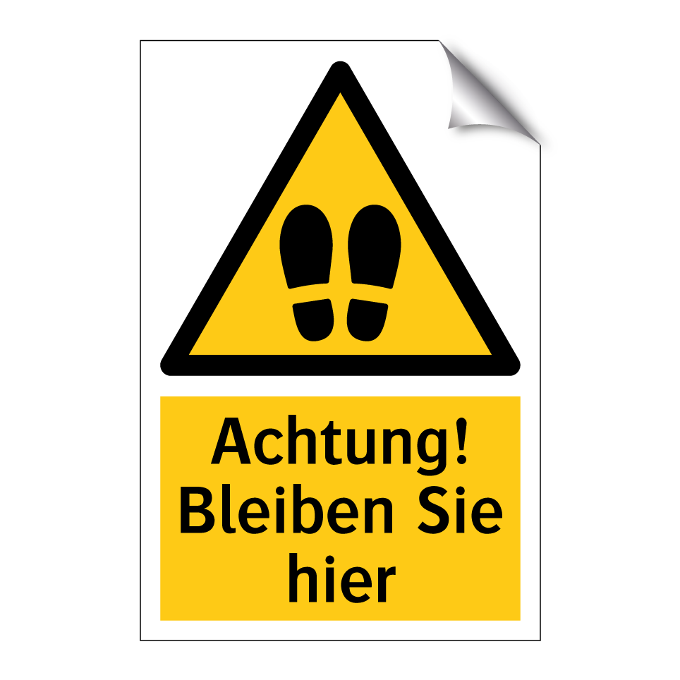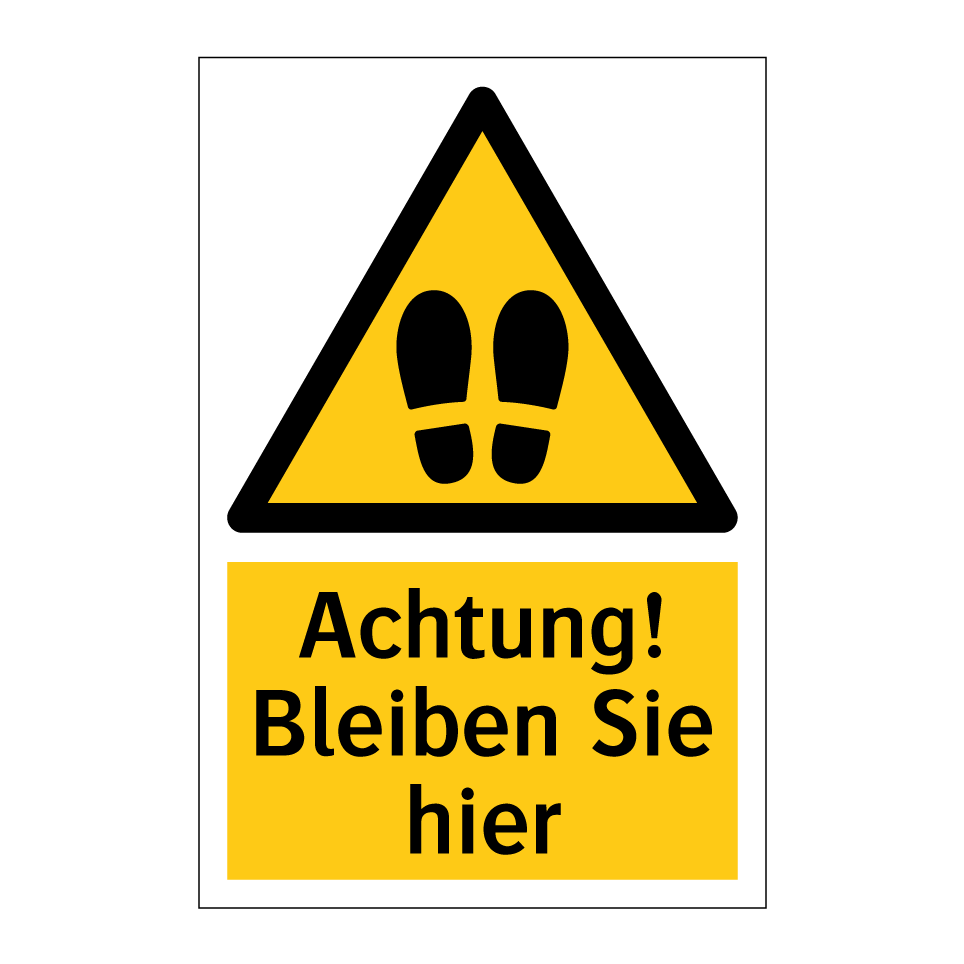 Warnschild mit dem Text Achtung! Bleiben Sie hier