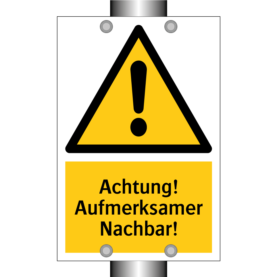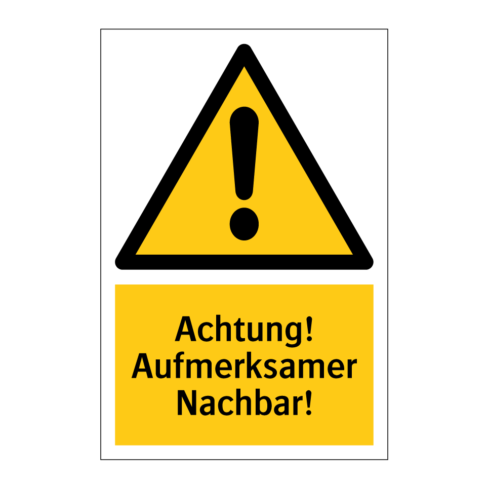 Warnschild mit dem Text Achtung! Aufmerksamer Nachbar!