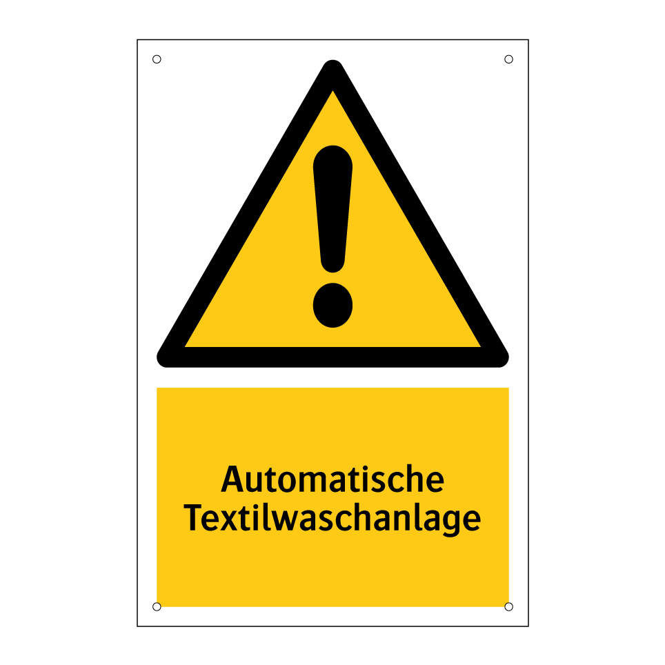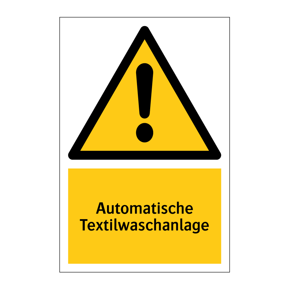 Warnschild mit dem Text Automatische Textilwaschanlage