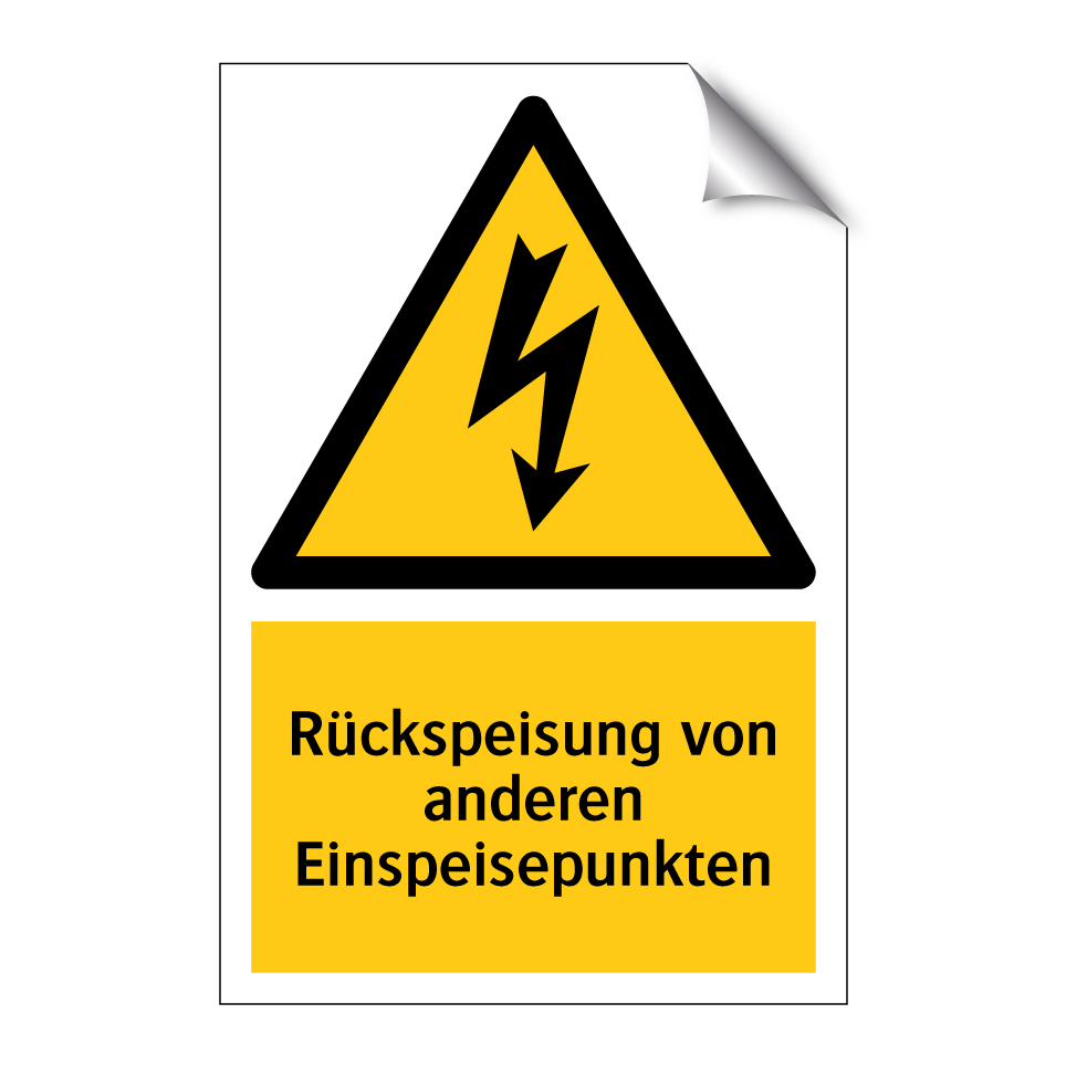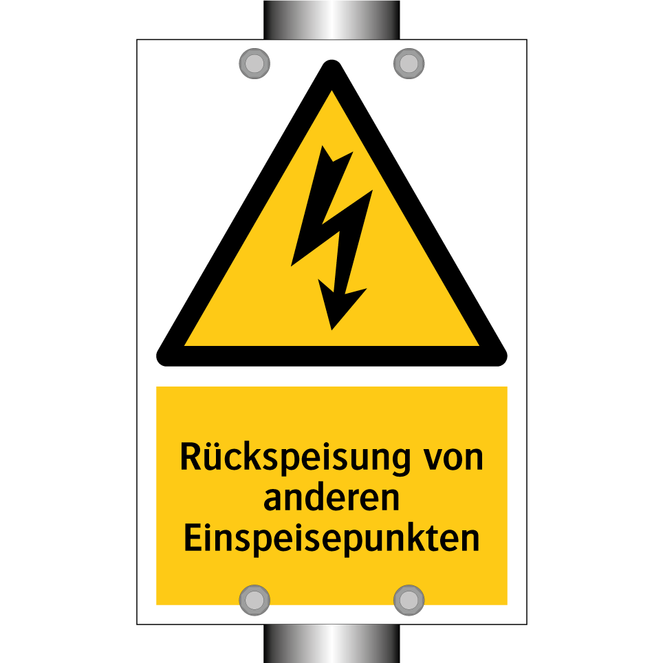 Warnschild mit dem Text Rückspeisung von anderen Einspeisepunkten