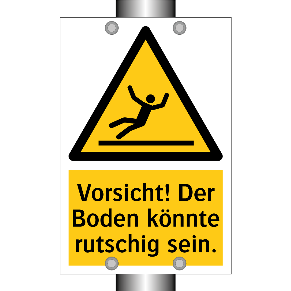 Diese auffällige Warnschild mit gelbem Hintergrund und schwarzem Text ist ideal, um auf potenziell rutschige Oberflächen hinzuweisen. Sie eignet sich hervorragend für den Einsatz in Bereichen wie Eingangsbereichen, Treppenhäusern oder Produktionsstätten, wo erhöhte Vorsicht geboten ist. Die klare Symbolik und die prägnante Botschaft sorgen dafür, dass die Warnung nicht übersehen wird. Platzieren Sie die Warnschilder an strategischen Punkten, um Unfälle zu vermeiden und die Sicherheit zu erhöhen. Ob in öffentlichen Gebäuden, Büros oder Lagerhallen, diese Warnschild ist ein unverzichtbares Element für die Unfallverhütung.