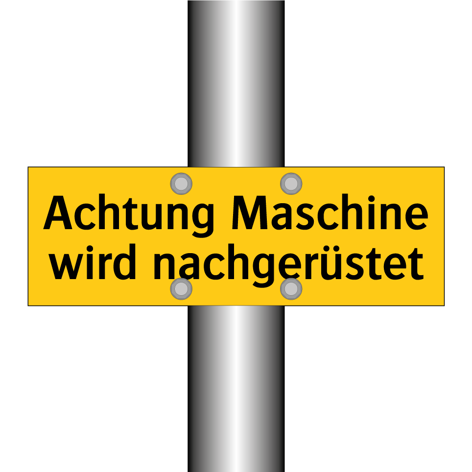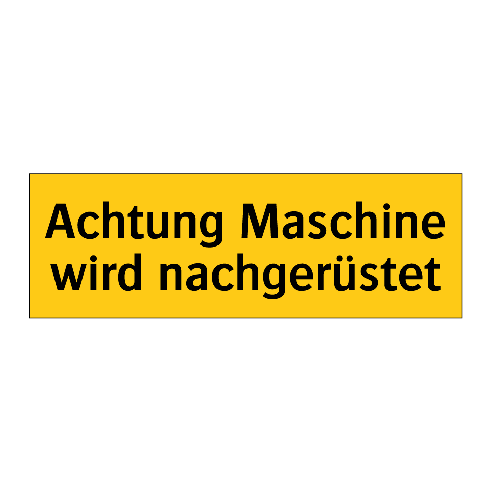 Warnschild mit dem Text Achtung Maschine wird nachgerüstet