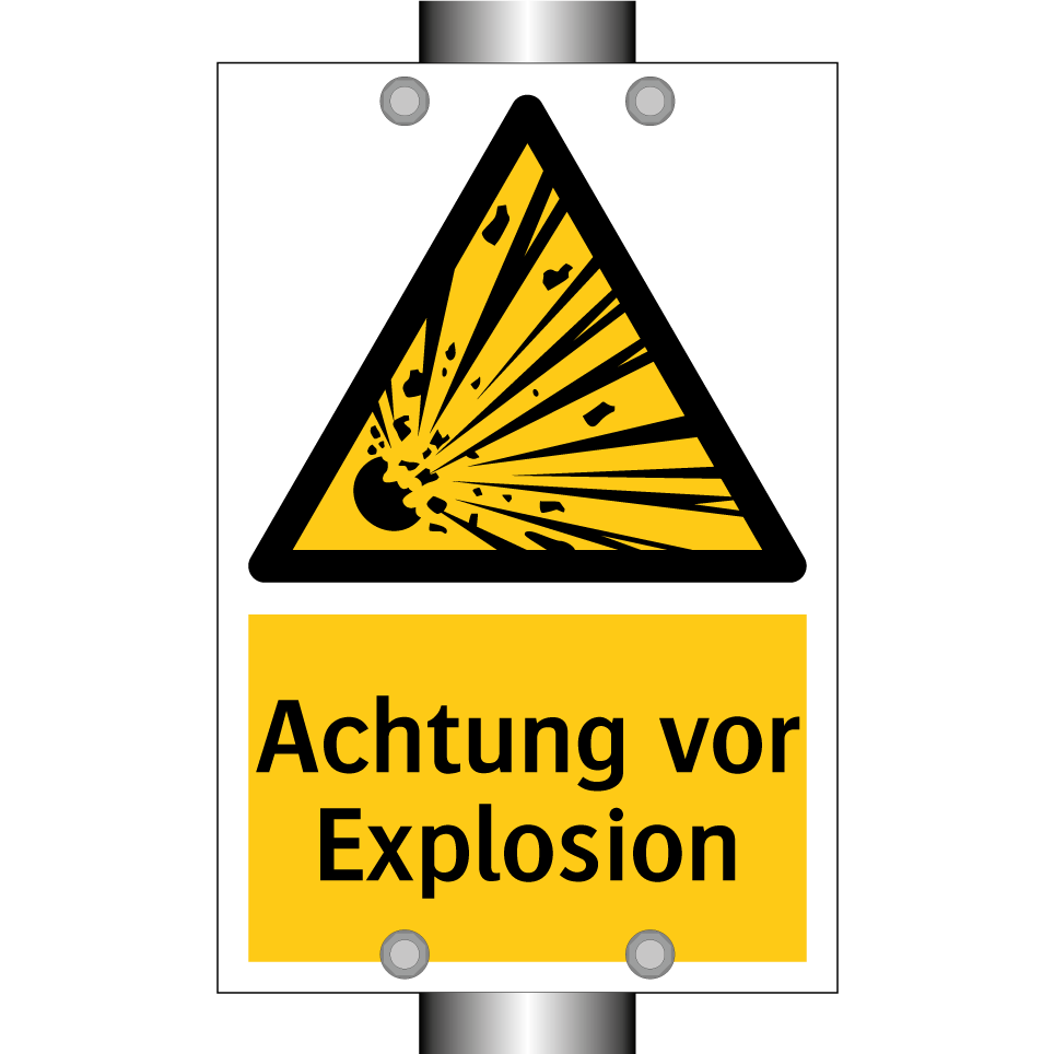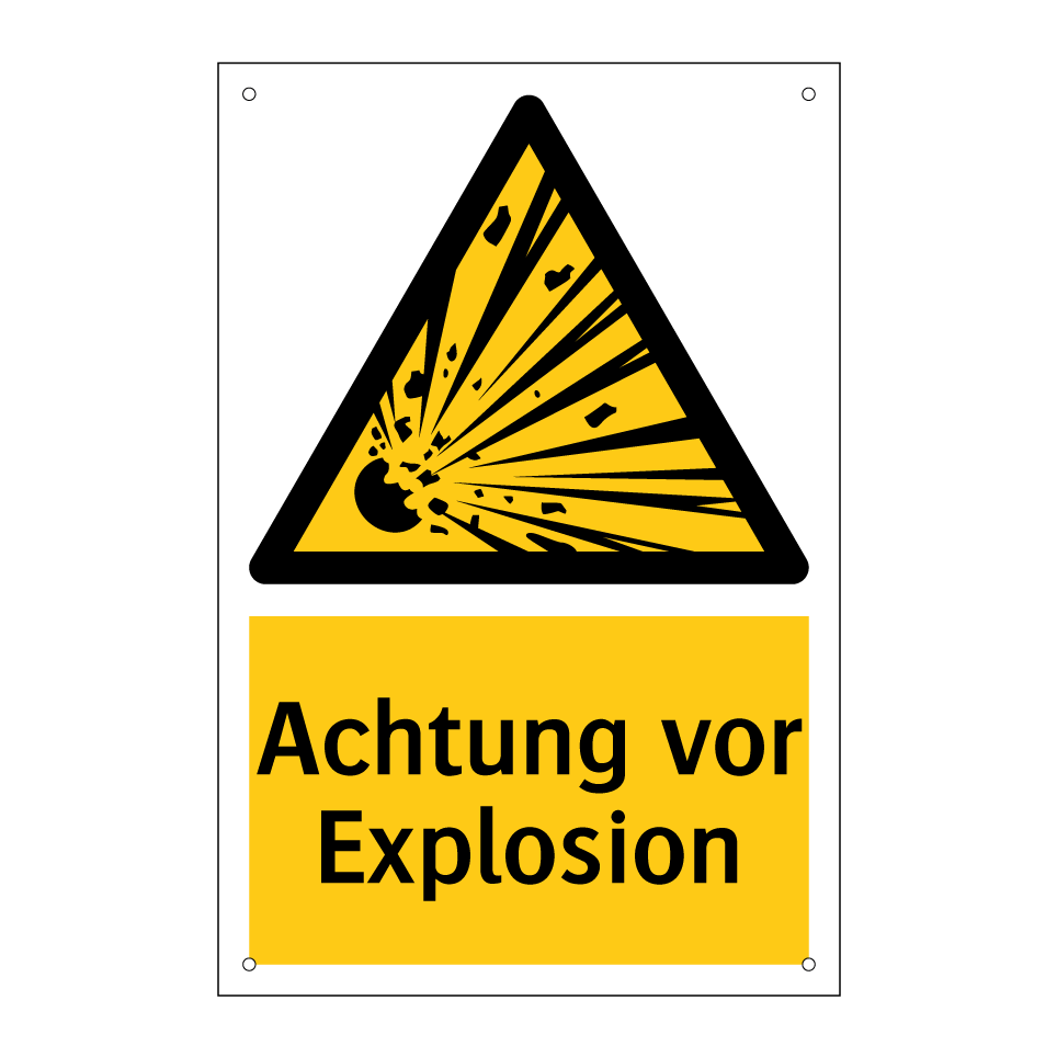 Diese auffällige Warnschild mit gelbem Hintergrund und schwarzer Schrift ist ideal, um auf potenzielle Explosionsgefahren hinzuweisen. Sie eignet sich hervorragend für den Einsatz in industriellen Umgebungen, Laboren oder Lagerbereichen, wo explosive Stoffe gelagert oder verarbeitet werden. Platzieren Sie die Warnschilder an gut sichtbaren Stellen, um Mitarbeiter und Besucher effektiv zu warnen und die Sicherheit zu erhöhen. Diese Sicherheitsmaßnahme ist entscheidend, um Unfälle zu vermeiden und das Bewusstsein für mögliche Gefahren zu schärfen. Nutzen Sie diese Warnschild, um eine sichere Arbeitsumgebung zu gewährleisten und das Risiko von Explosionen zu minimieren.