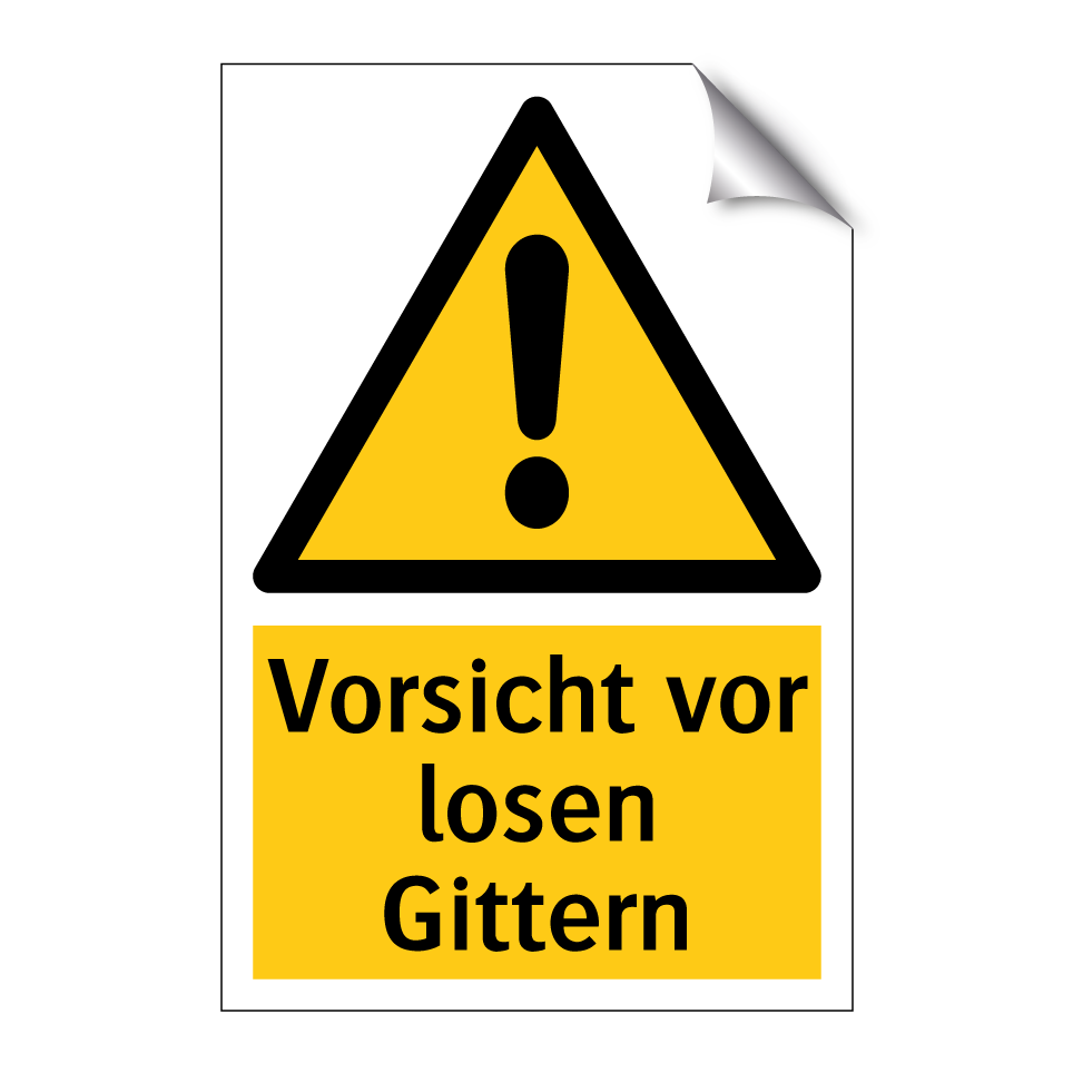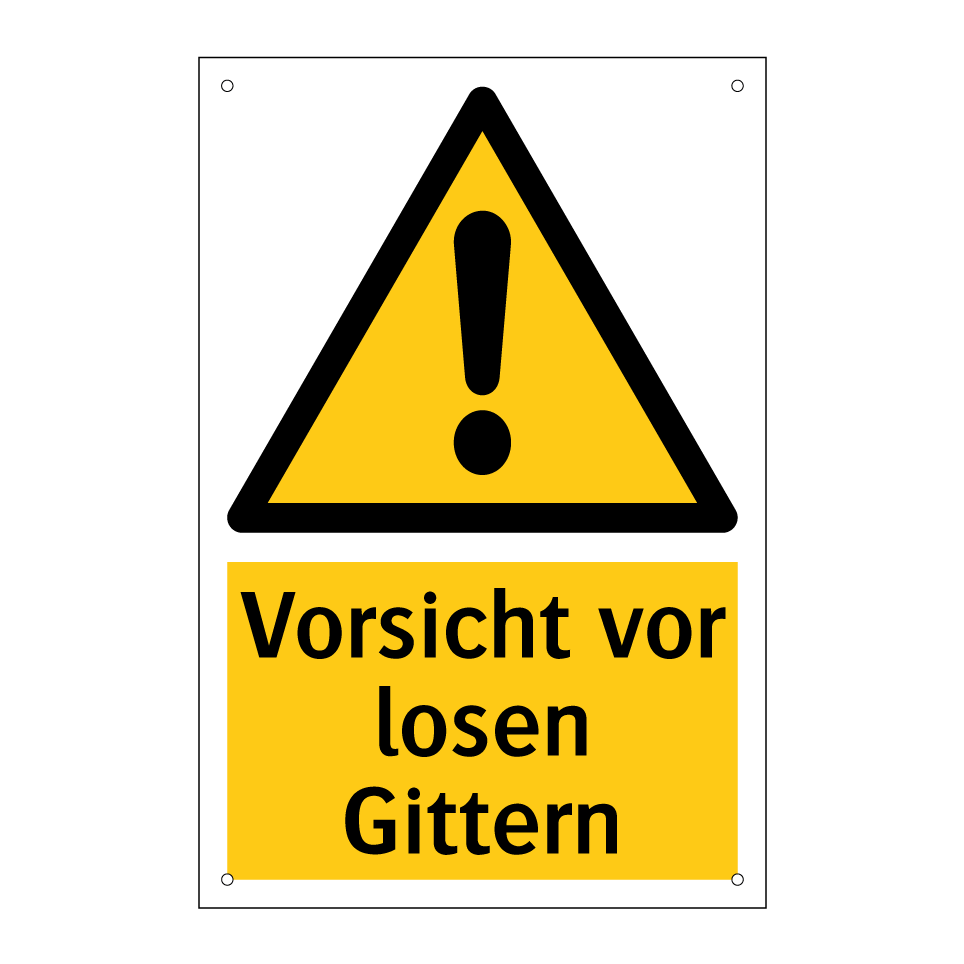 Warnschild mit dem Text Vorsicht vor losen Gittern