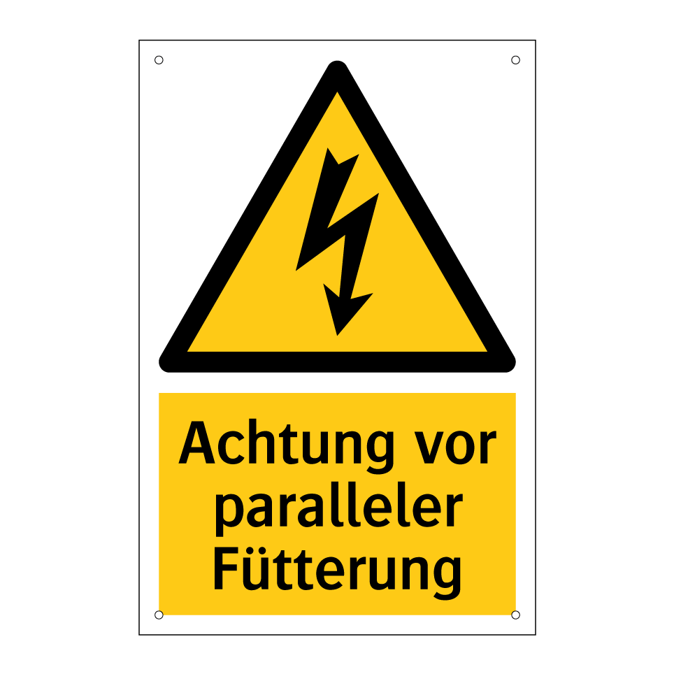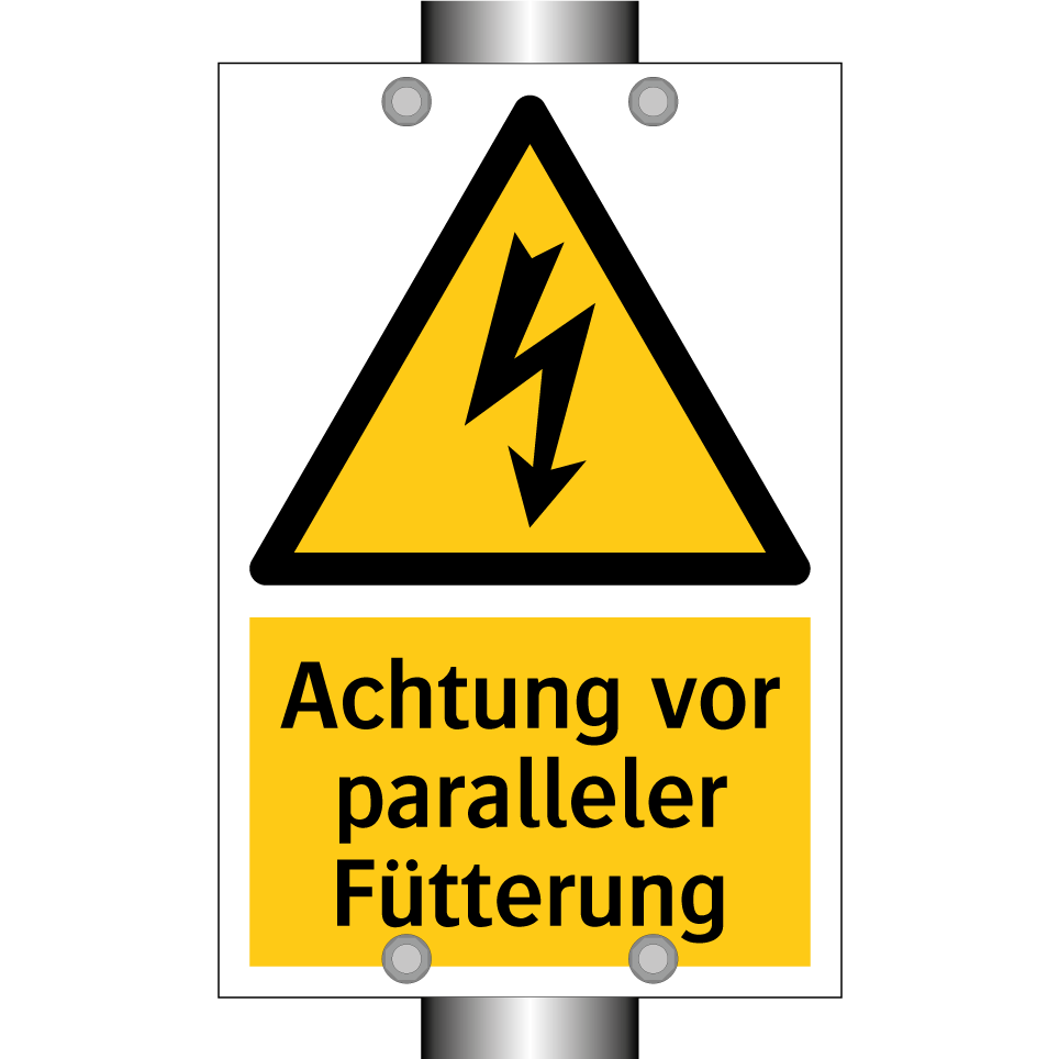 Warnschild mit dem Text Achtung vor paralleler Fütterung