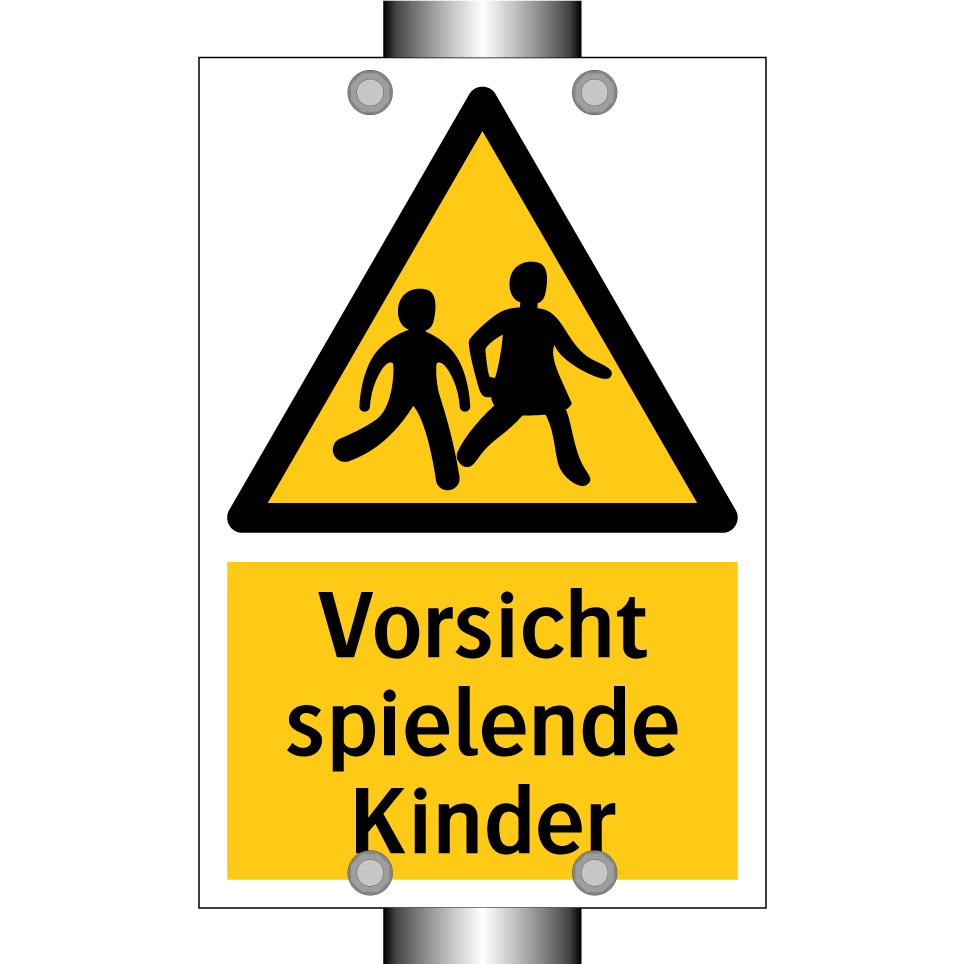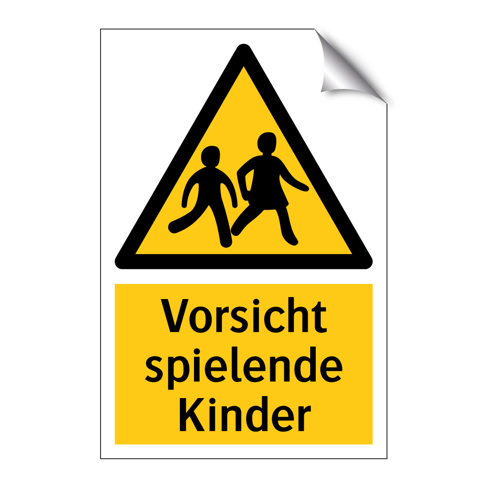Warnschild mit dem Text Vorsicht spielende Kinder