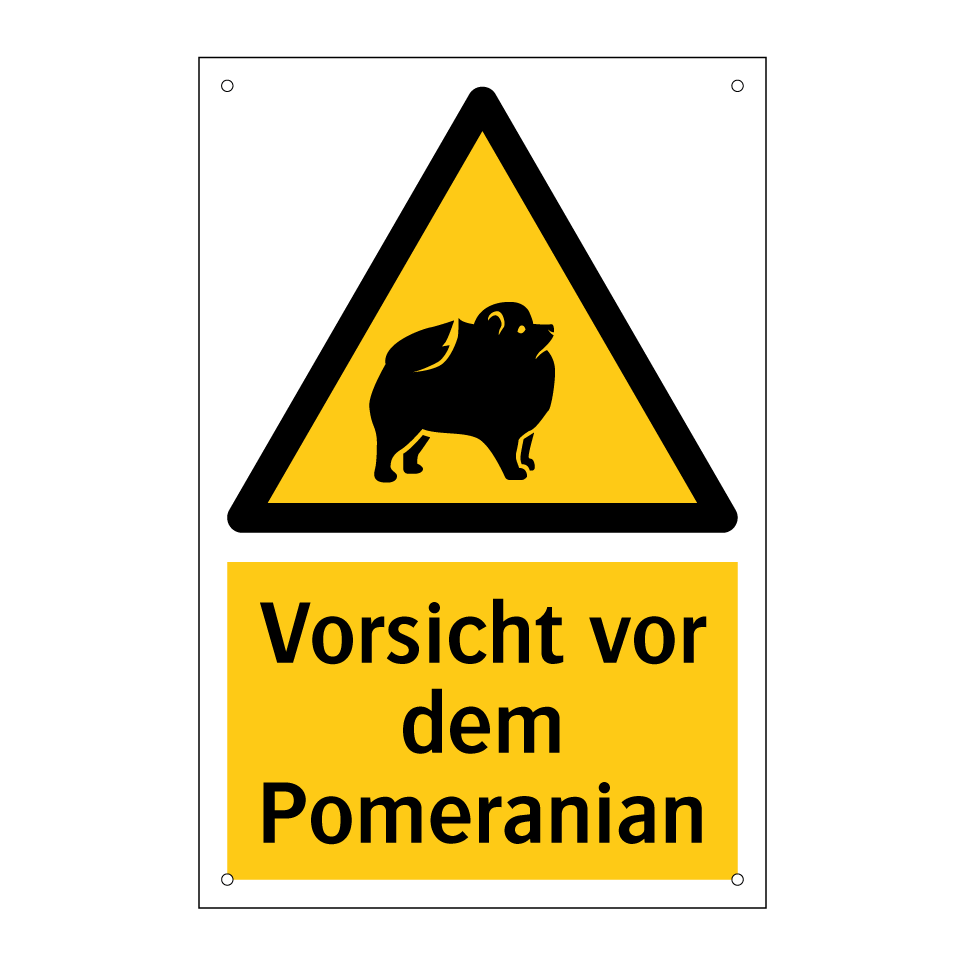 Warnschild mit dem Text Vorsicht vor dem Pomeranian