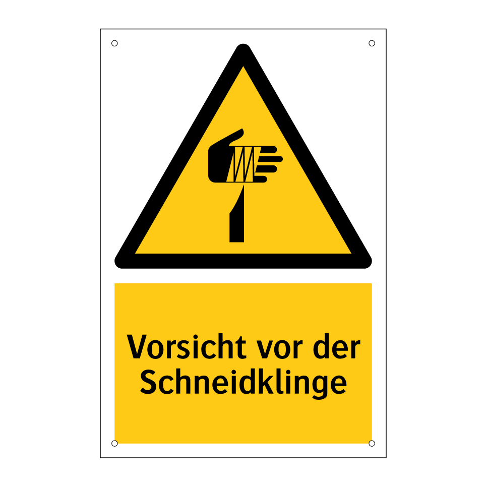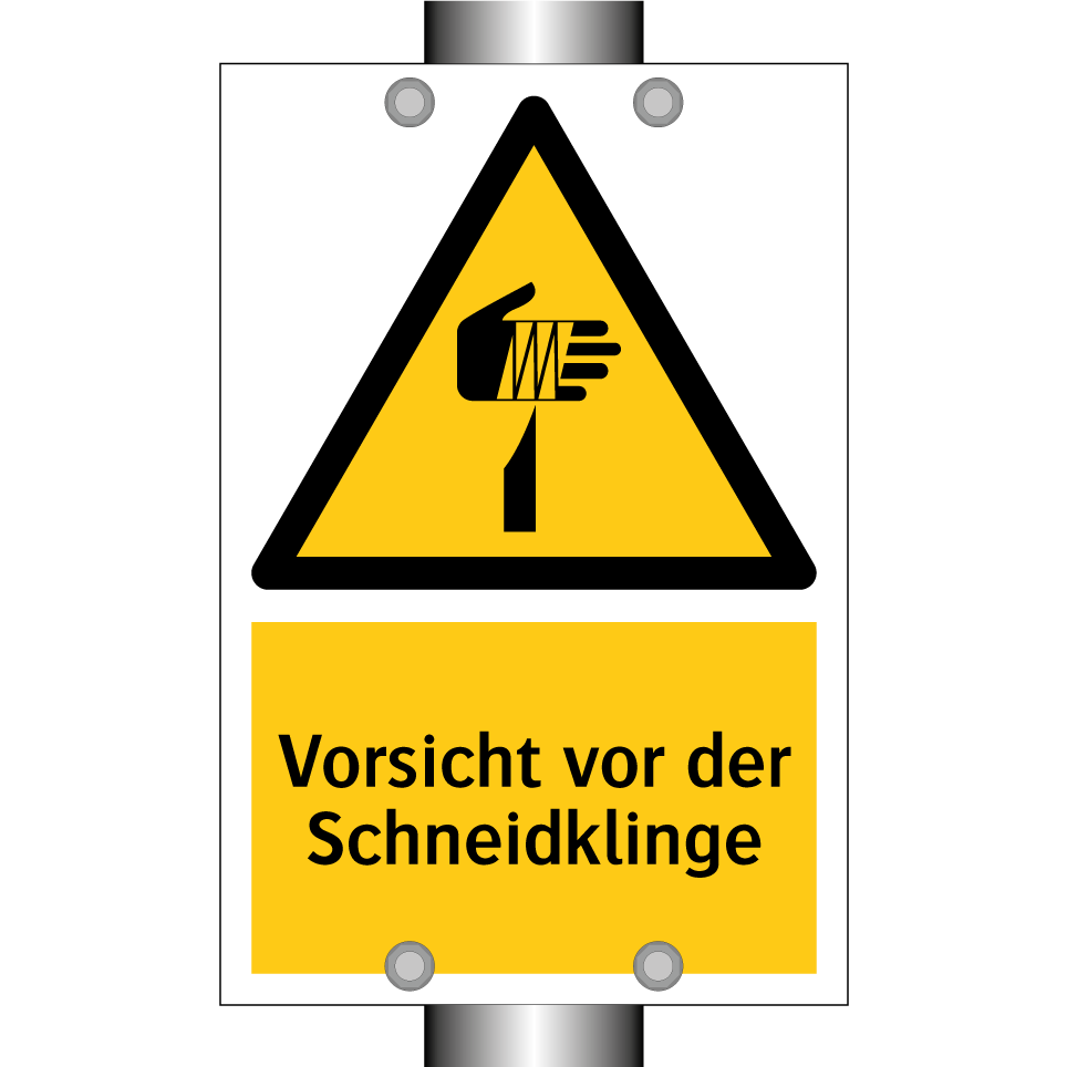 Warnschild mit dem Text Vorsicht vor der Schneidklinge