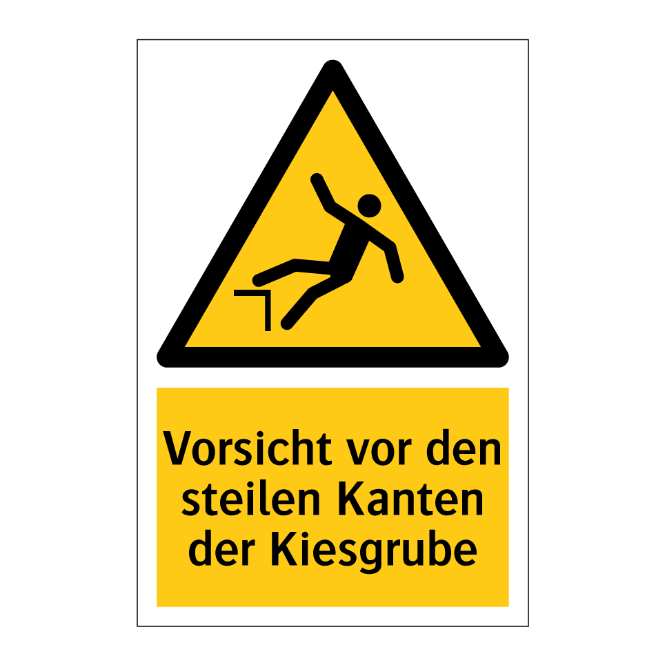 Warnschild mit dem Text Vorsicht vor den steilen Kanten der Kiesgrube