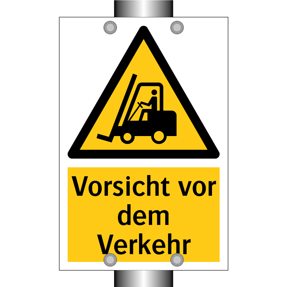 Warnschild mit dem Text Vorsicht vor dem Verkehr