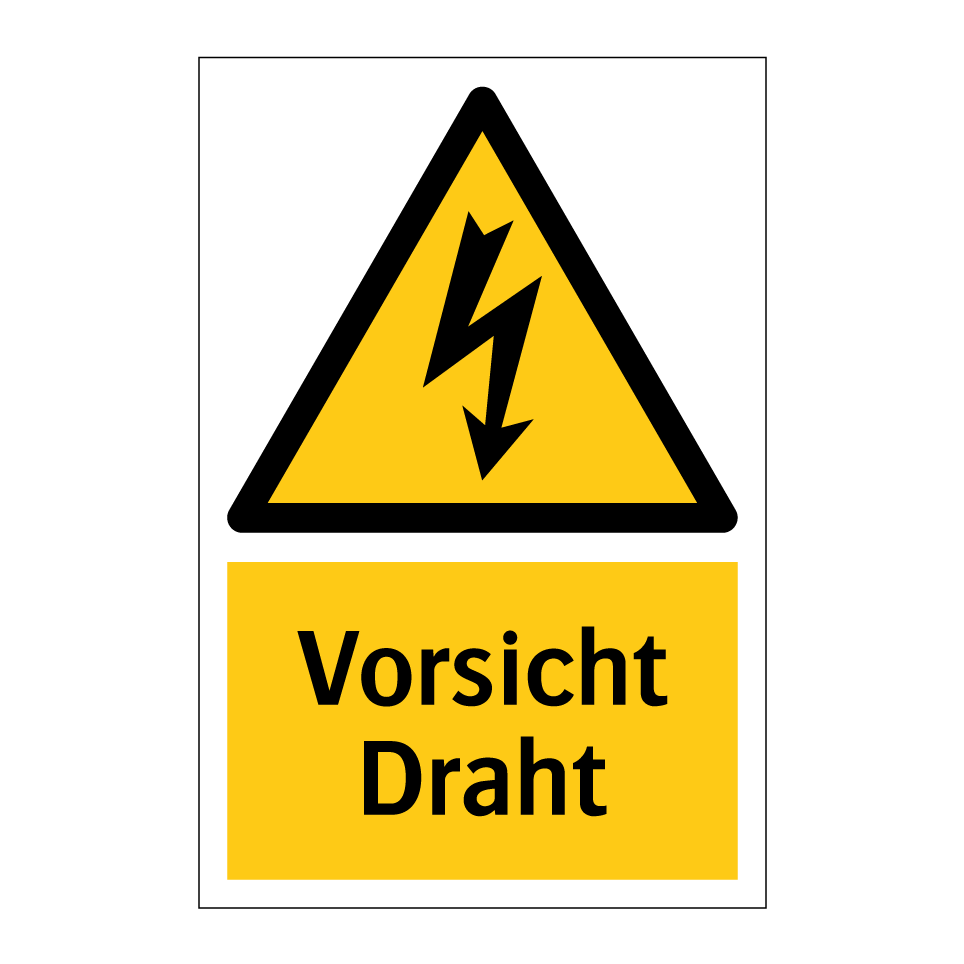 Diese auffällige Warnschild mit gelbem Hintergrund und schwarzer Schrift ist ideal, um auf potenzielle Gefahren hinzuweisen. Es eignet sich hervorragend für den Einsatz in Bereichen, in denen Vorsicht geboten ist, wie zum Beispiel in der Nähe von Zäunen oder anderen Bereichen mit Draht. Die klare Symbolik und die prägnante Botschaft machen es einfach, die Aufmerksamkeit von Passanten oder Mitarbeitern zu erregen. Platzieren Sie das Warnschild an gut sichtbaren Stellen, um die Sicherheit zu erhöhen und Unfälle zu vermeiden. Ob in industriellen Umgebungen oder auf Baustellen, dieses Warnschild ist ein unverzichtbares Element für die Sicherheit.