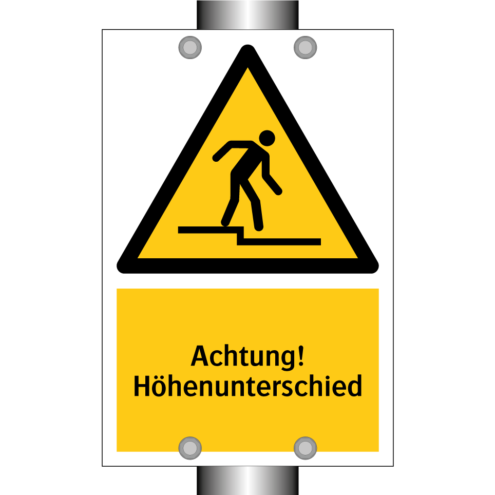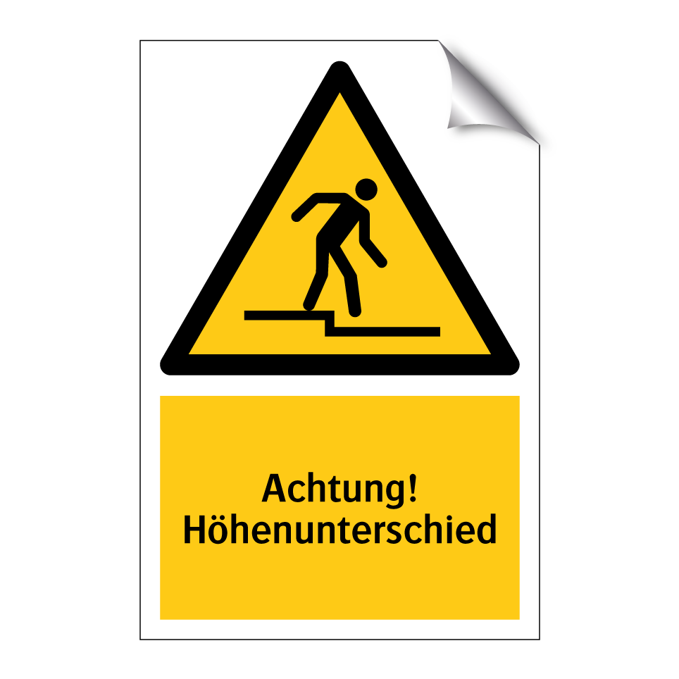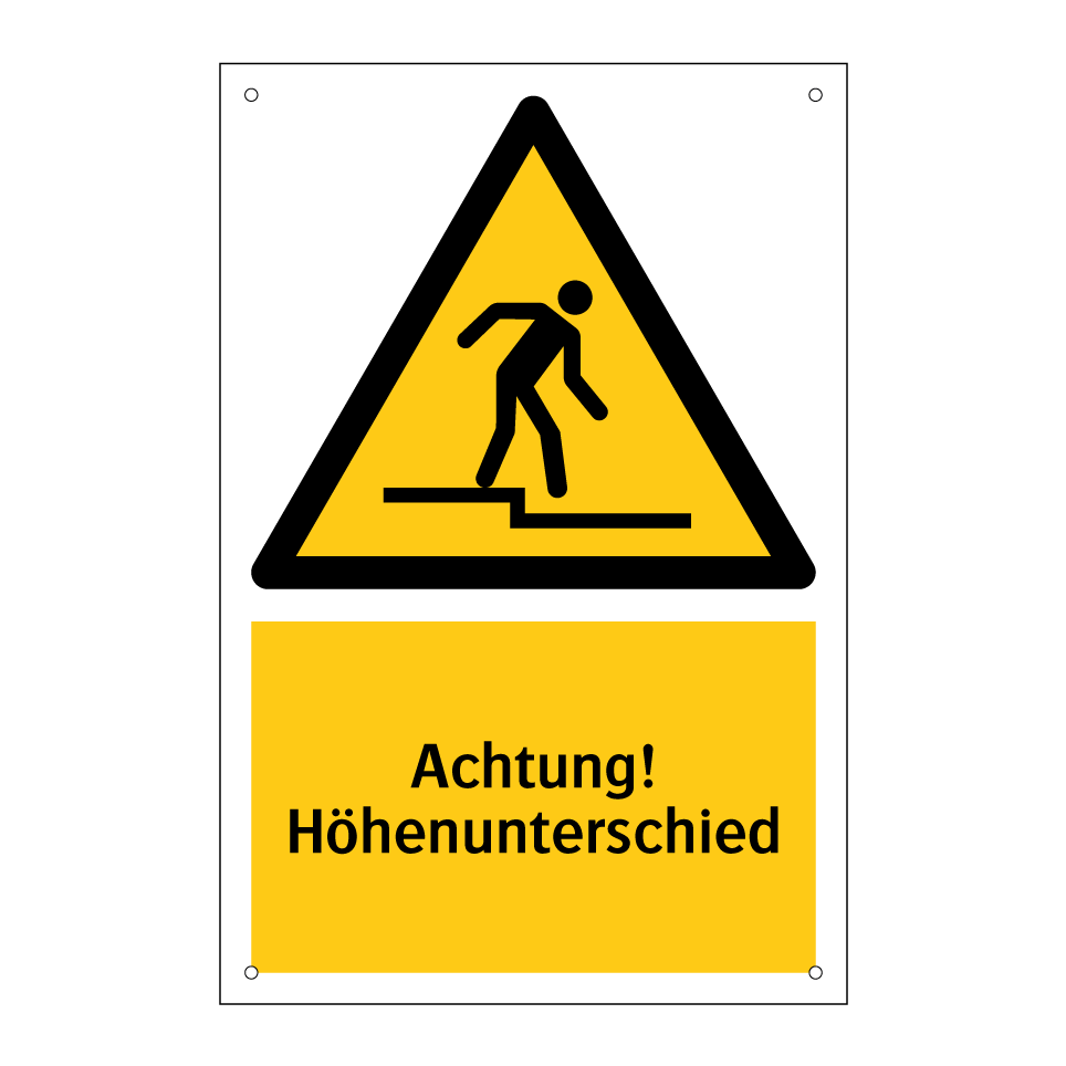 Warnschild mit dem Text Achtung! Höhenunterschied