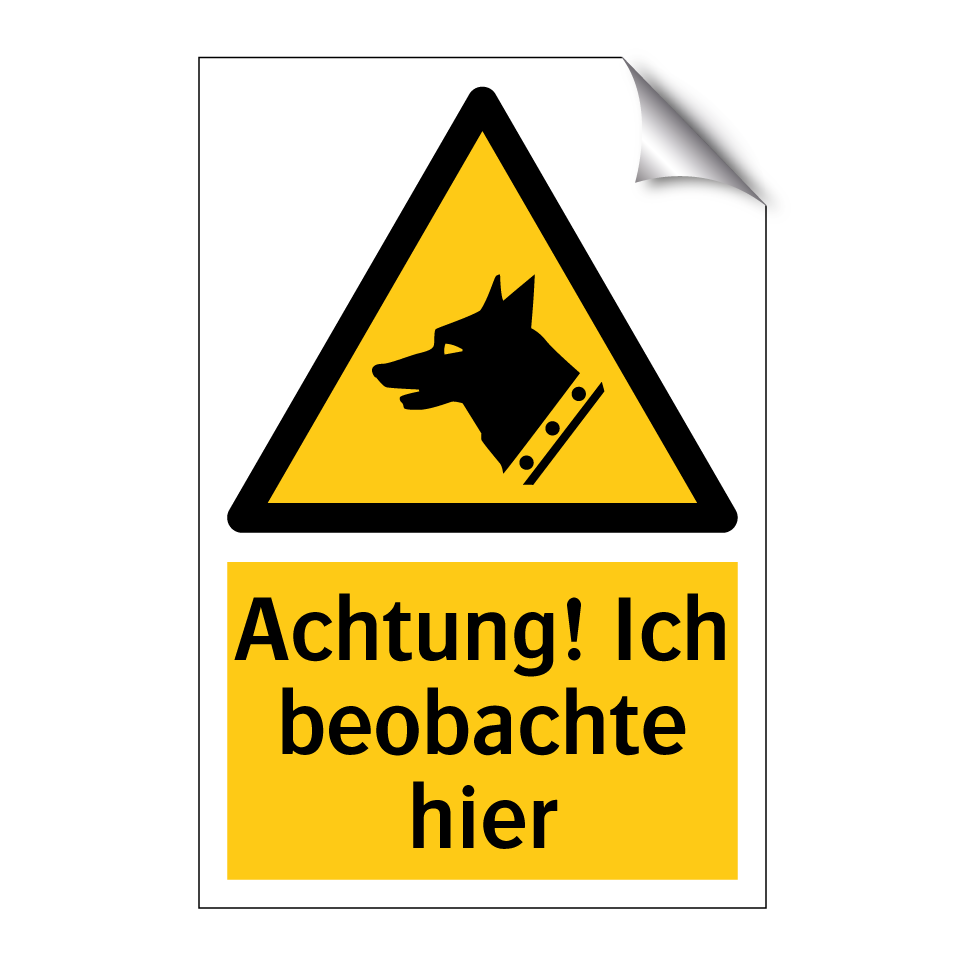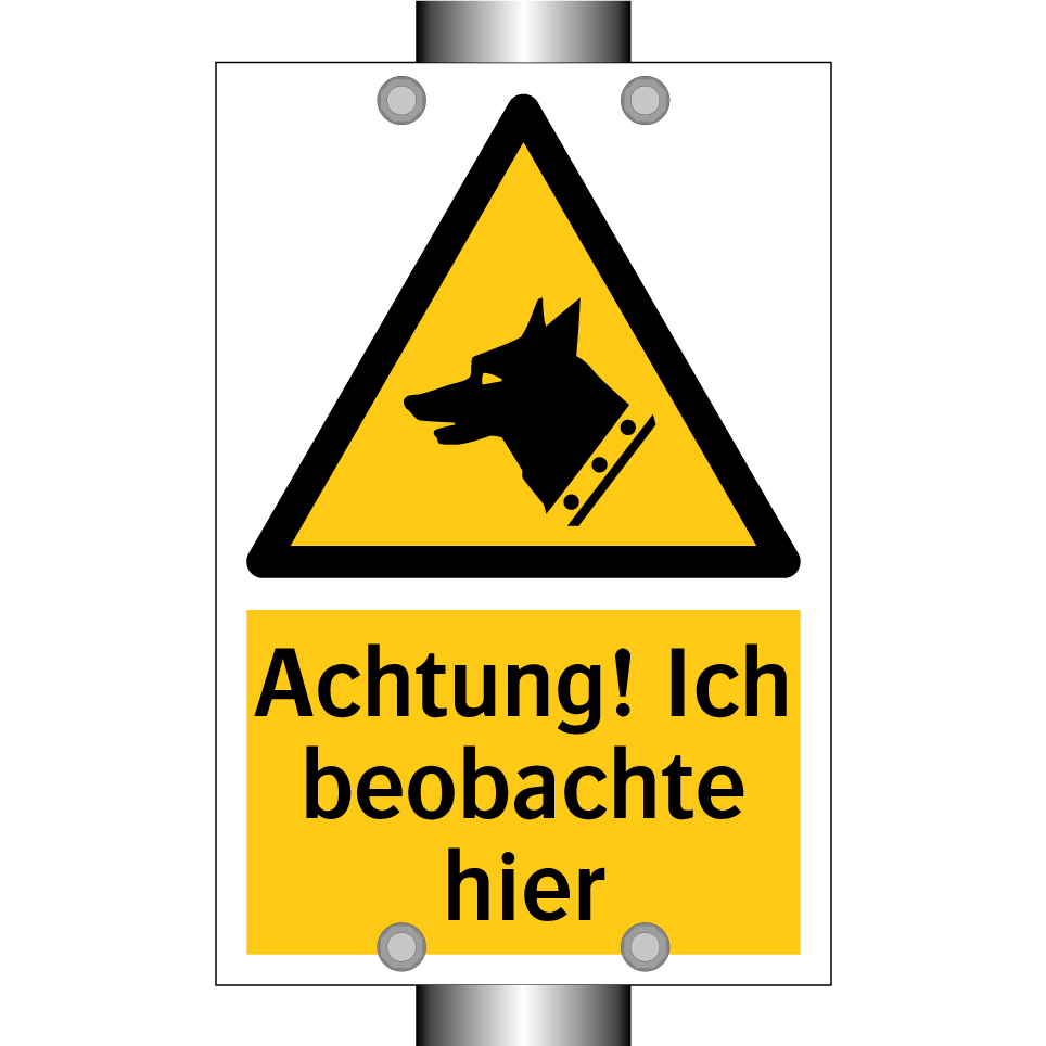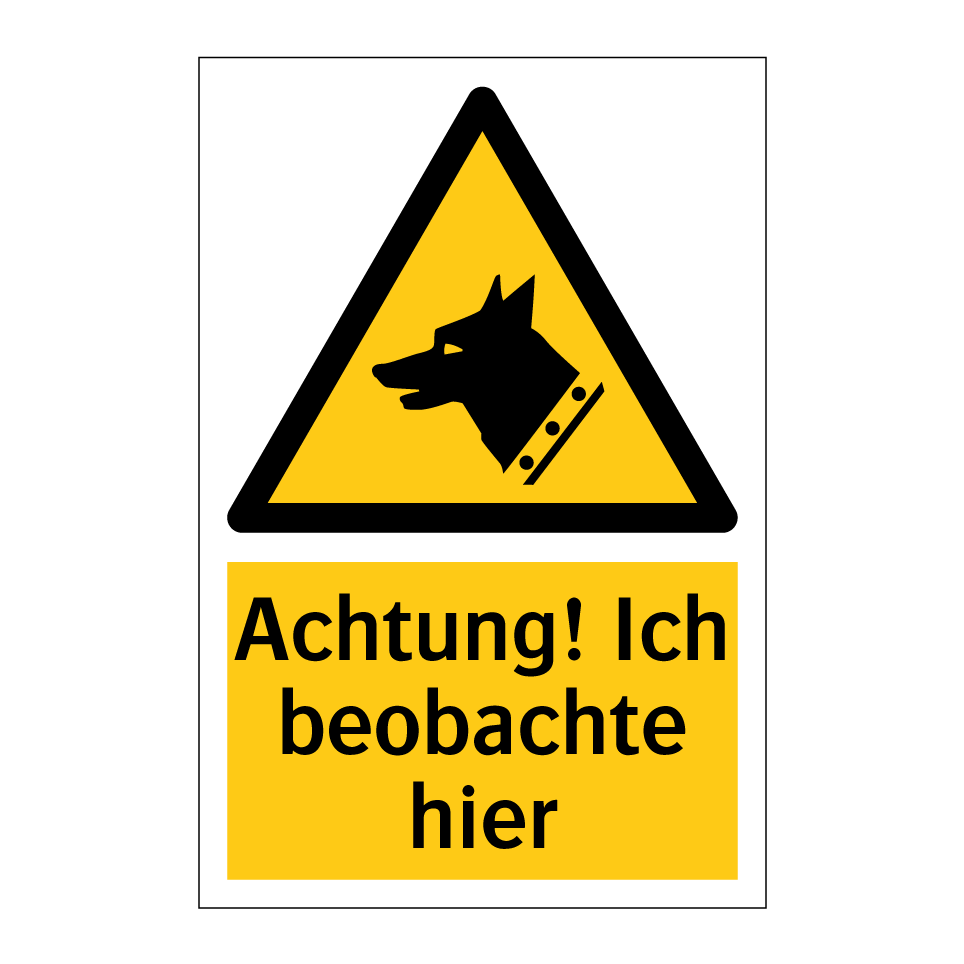 Warnschild mit dem Text Achtung! Ich beobachte hier