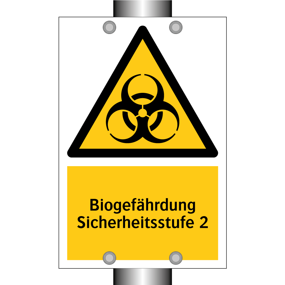 Warnschild mit dem Text Biogefährdung Sicherheitsstufe 2
