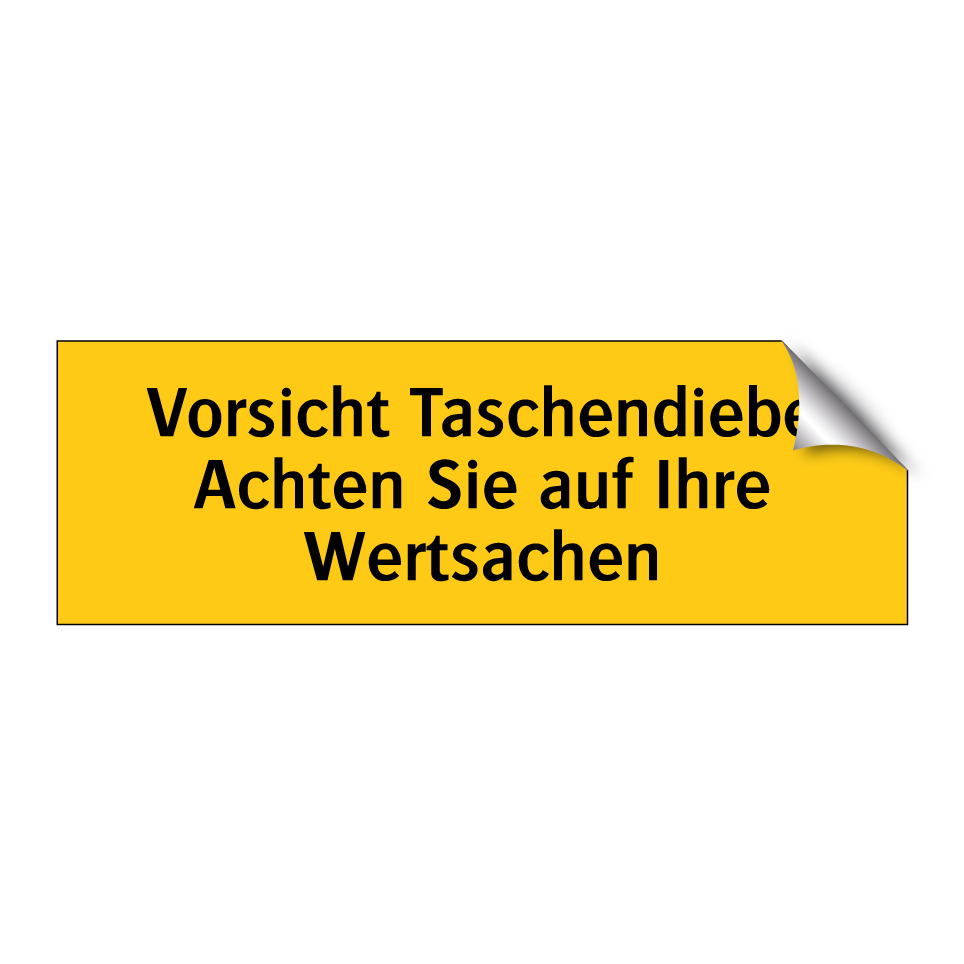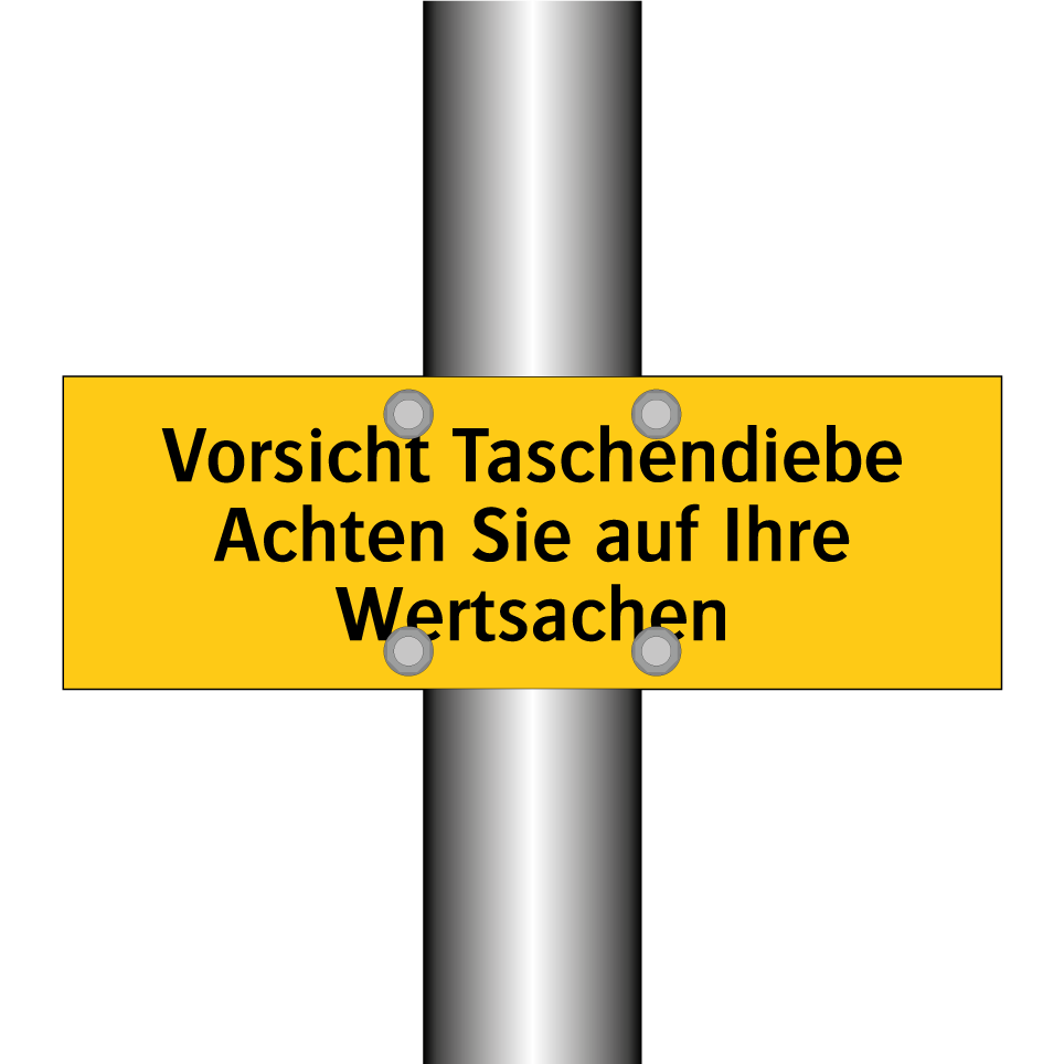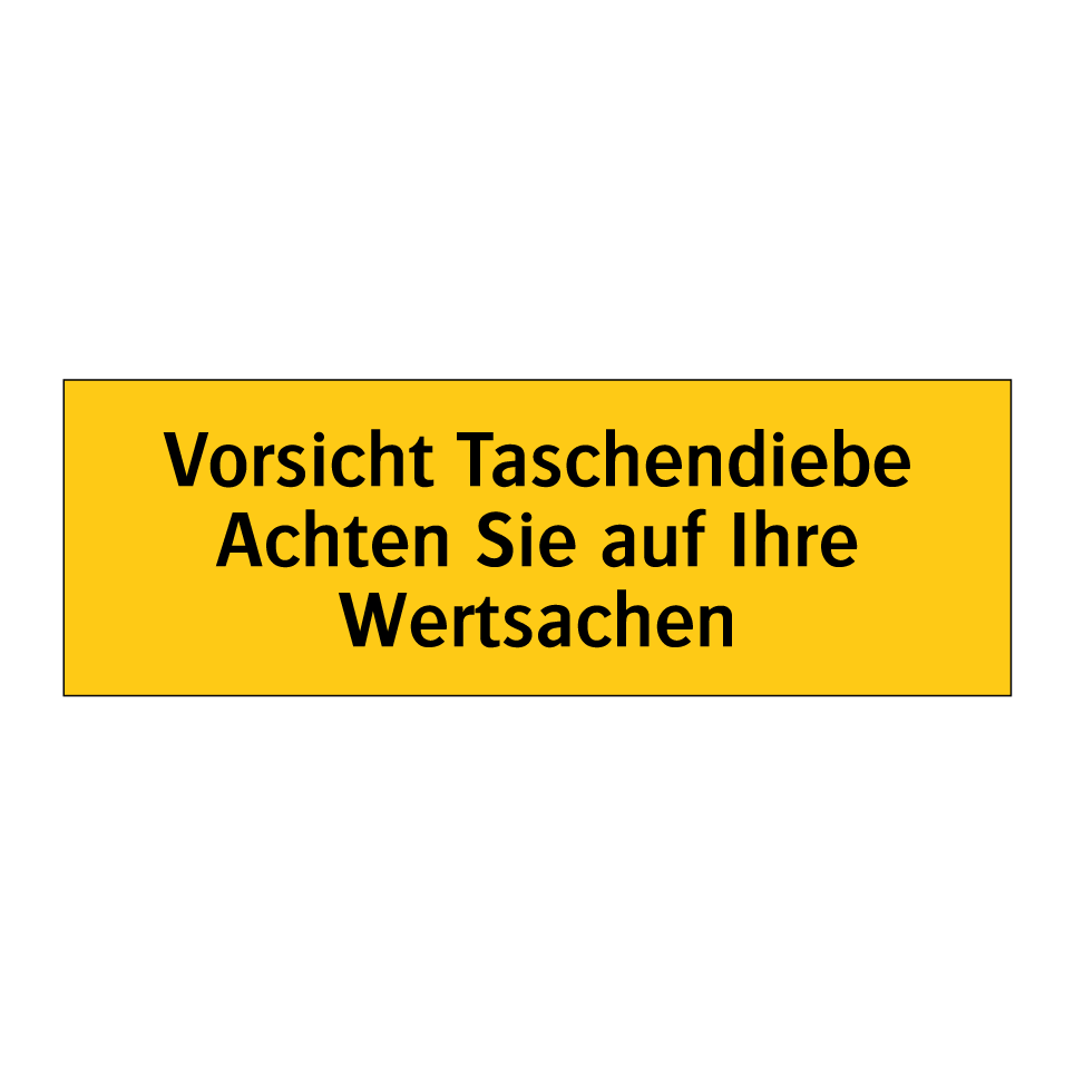 Warnschild mit dem Text Vorsicht Taschendiebe Achten Sie auf Ihre Wertsachen