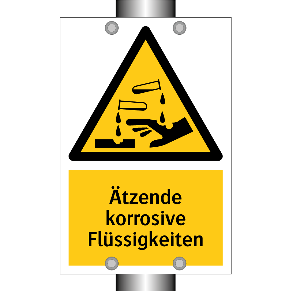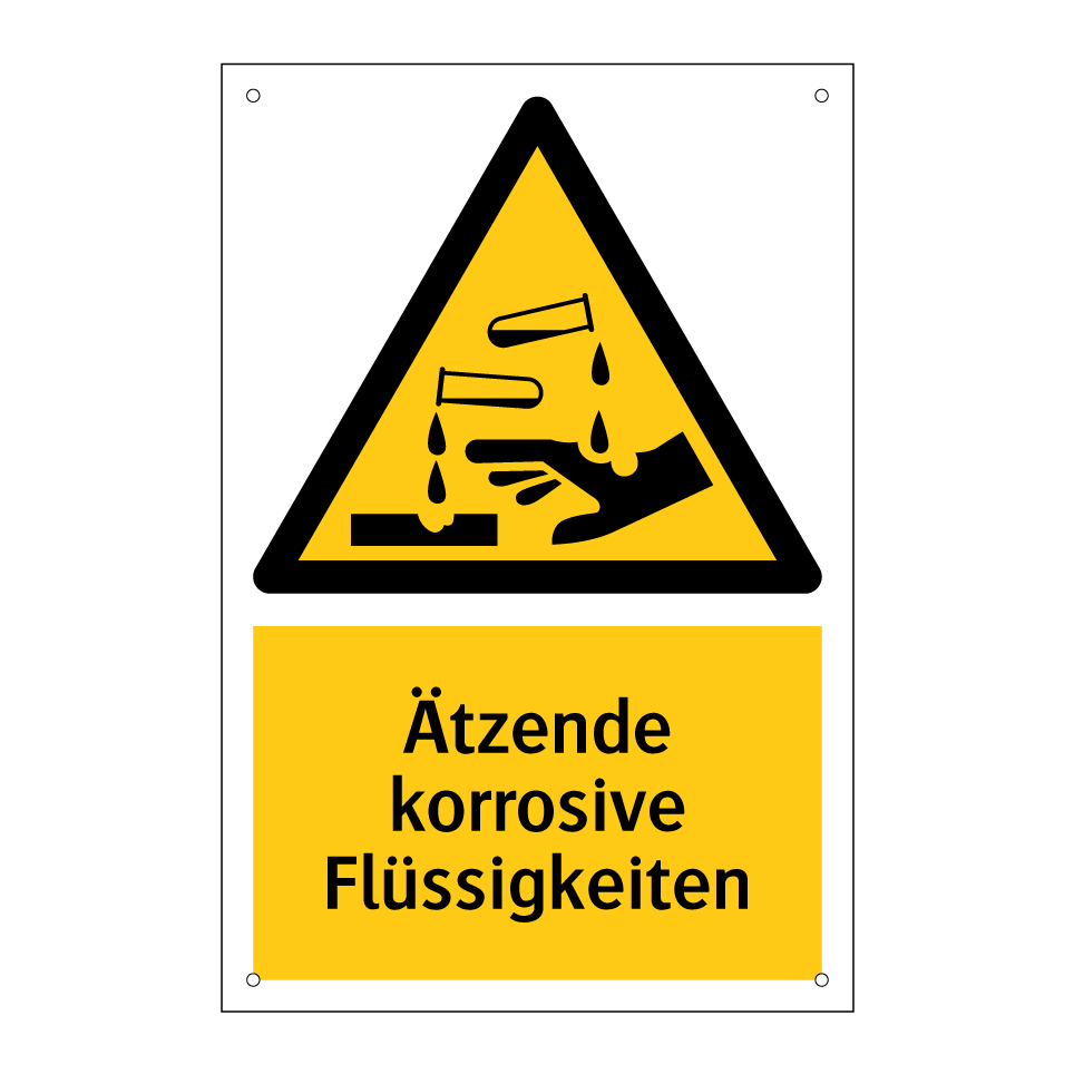 Warnschild mit dem Text Ätzende korrosive Flüssigkeiten