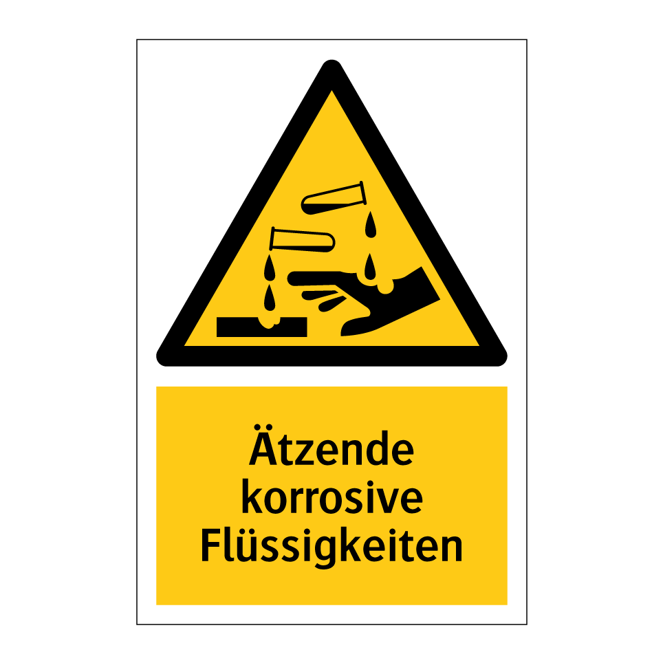 Diese auffällige Warnschild mit gelbem Hintergrund und schwarzer Schrift ist ideal, um auf die Gefahren von ätzenden und korrosiven Flüssigkeiten hinzuweisen. Sie eignet sich hervorragend für den Einsatz in Laboren, Chemiefabriken oder Lagerbereichen, in denen solche Substanzen gelagert oder verwendet werden. Die klare Symbolik und der prägnante Text sorgen dafür, dass die Botschaft unmissverständlich ist und sofort ins Auge fällt. Platzieren Sie diese Warnschilder an gut sichtbaren Stellen, um die Sicherheit zu erhöhen und Mitarbeiter sowie Besucher effektiv vor möglichen Gefahren zu schützen. Ein unverzichtbares Element für jeden, der mit gefährlichen Chemikalien arbeitet.