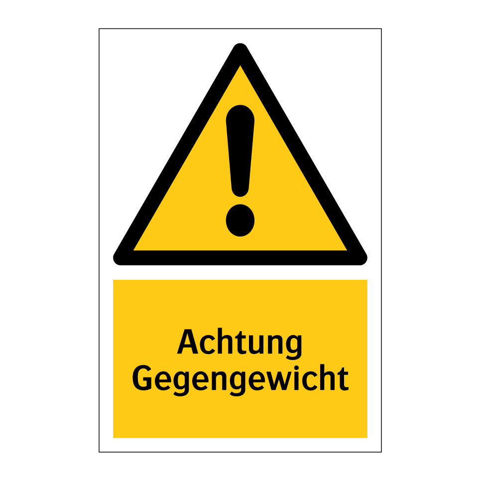 Warnschild mit dem Text Achtung Gegengewicht