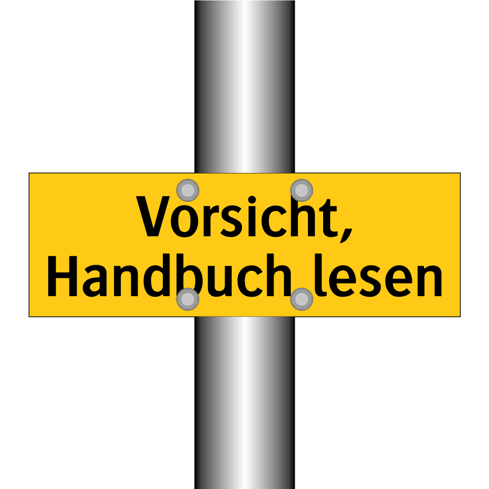 Warnschild mit dem Text Vorsicht, Handbuch lesen