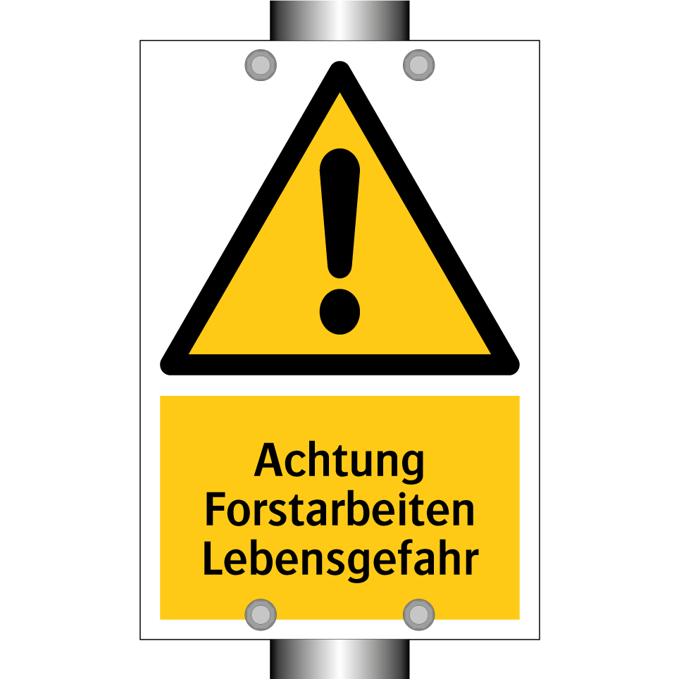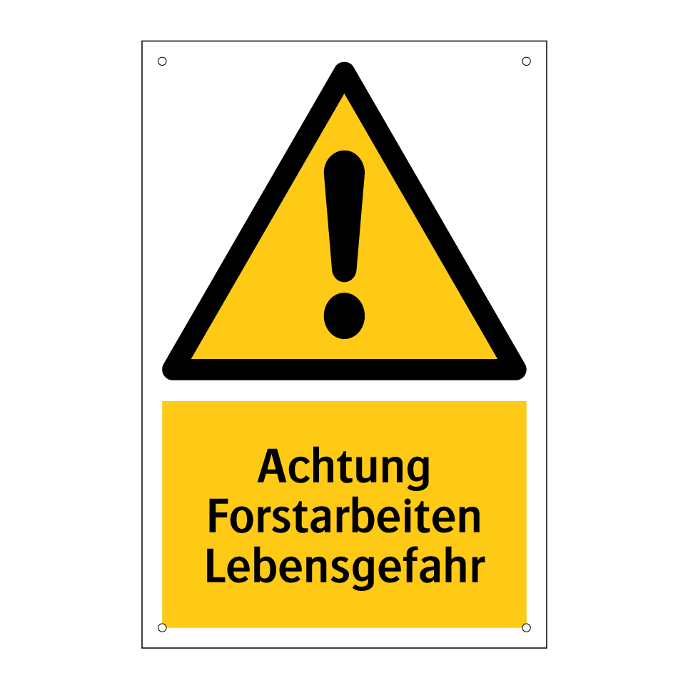 Warnschild mit dem Text Achtung Forstarbeiten Lebensgefahr