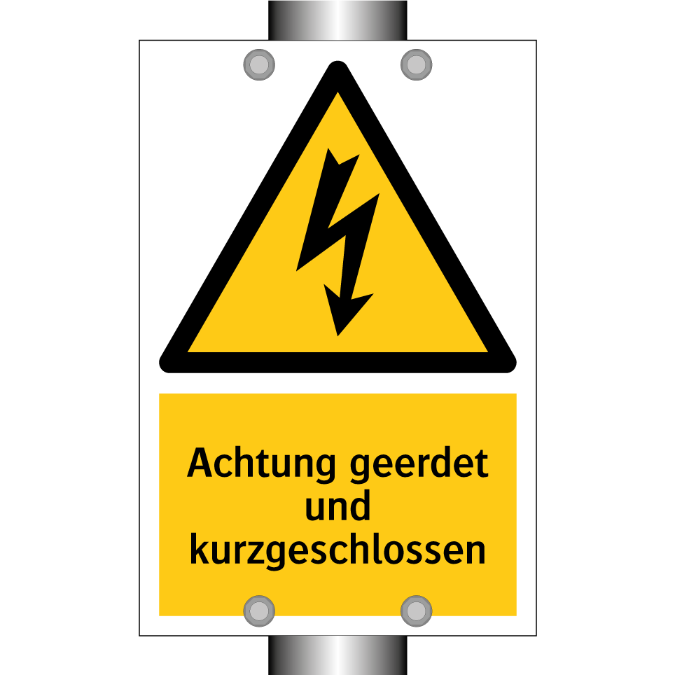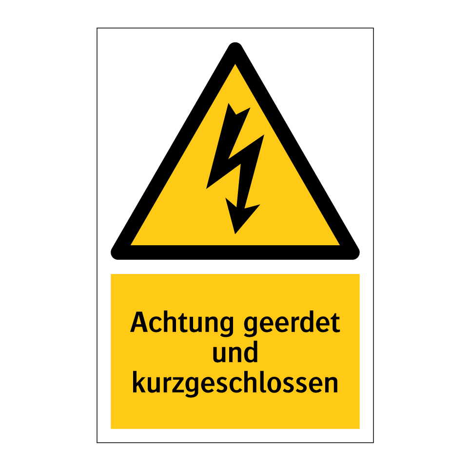 Warnschild mit dem Text Achtung geerdet und kurzgeschlossen