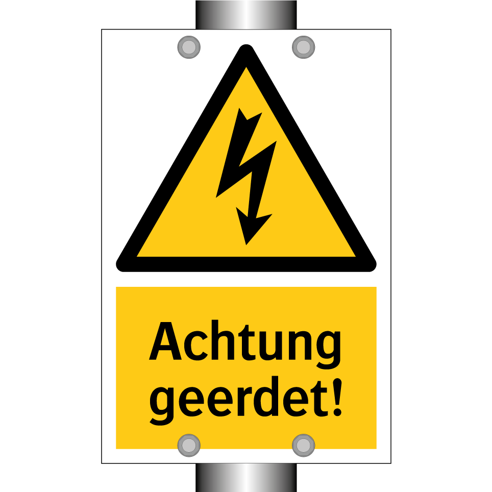 Diese Warnschild mit gelbem Hintergrund und schwarzem Text ist ideal für den Einsatz in Bereichen, in denen auf geerdete Geräte oder Installationen hingewiesen werden muss. Es eignet sich hervorragend für industrielle Umgebungen, Werkstätten oder technische Räume, in denen elektrische Sicherheit von größter Bedeutung ist. Platzieren Sie das Warnschild an gut sichtbaren Stellen, um sicherzustellen, dass alle Mitarbeiter und Besucher auf die Erdung aufmerksam gemacht werden. Durch die auffällige Symbolik und klare Botschaft wird die Sicherheit am Arbeitsplatz erhöht. Nutzen Sie dieses Warnschild, um potenzielle Gefahren zu minimieren und die Einhaltung von Sicherheitsvorschriften zu gewährleisten.