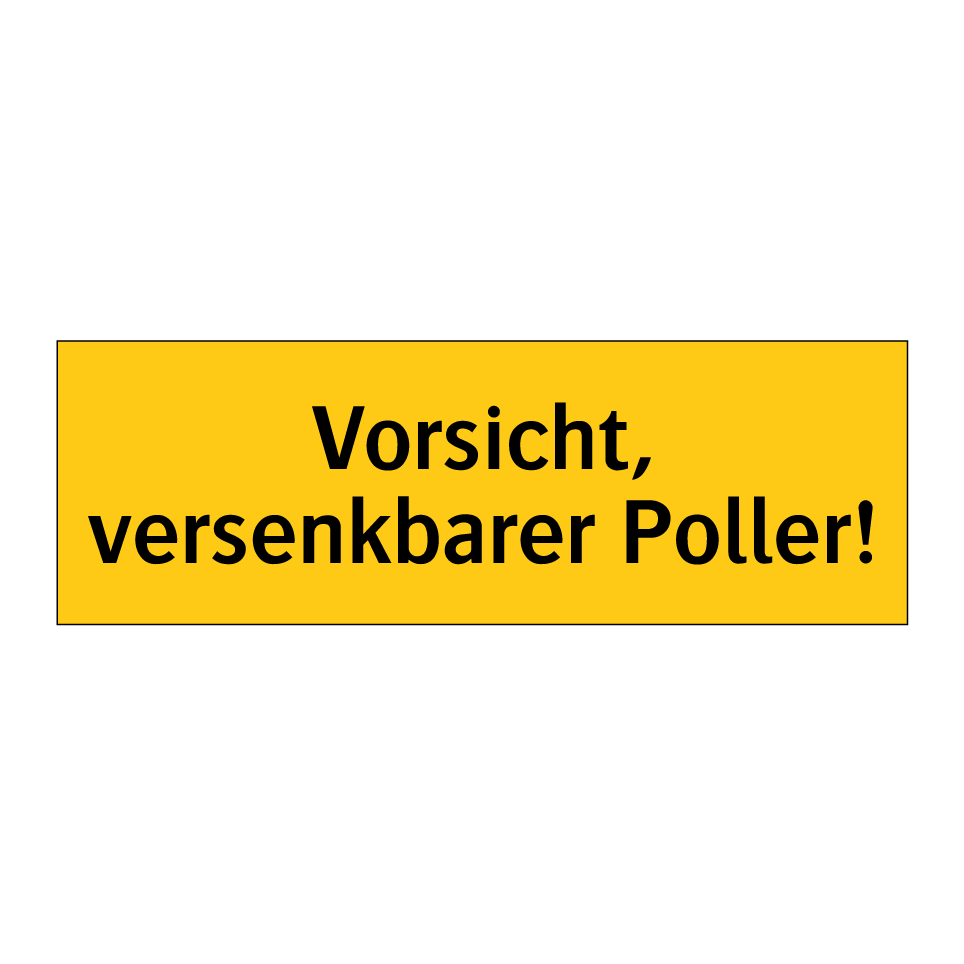 Warnschild mit dem Text Vorsicht, versenkbarer Poller!